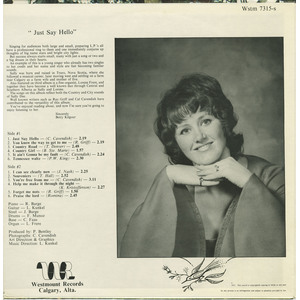 Also featured on this album is a fine organist, Lorene Frere, and together they have become a well known duo through Central and Southern Alberta as Sally and Lorene.