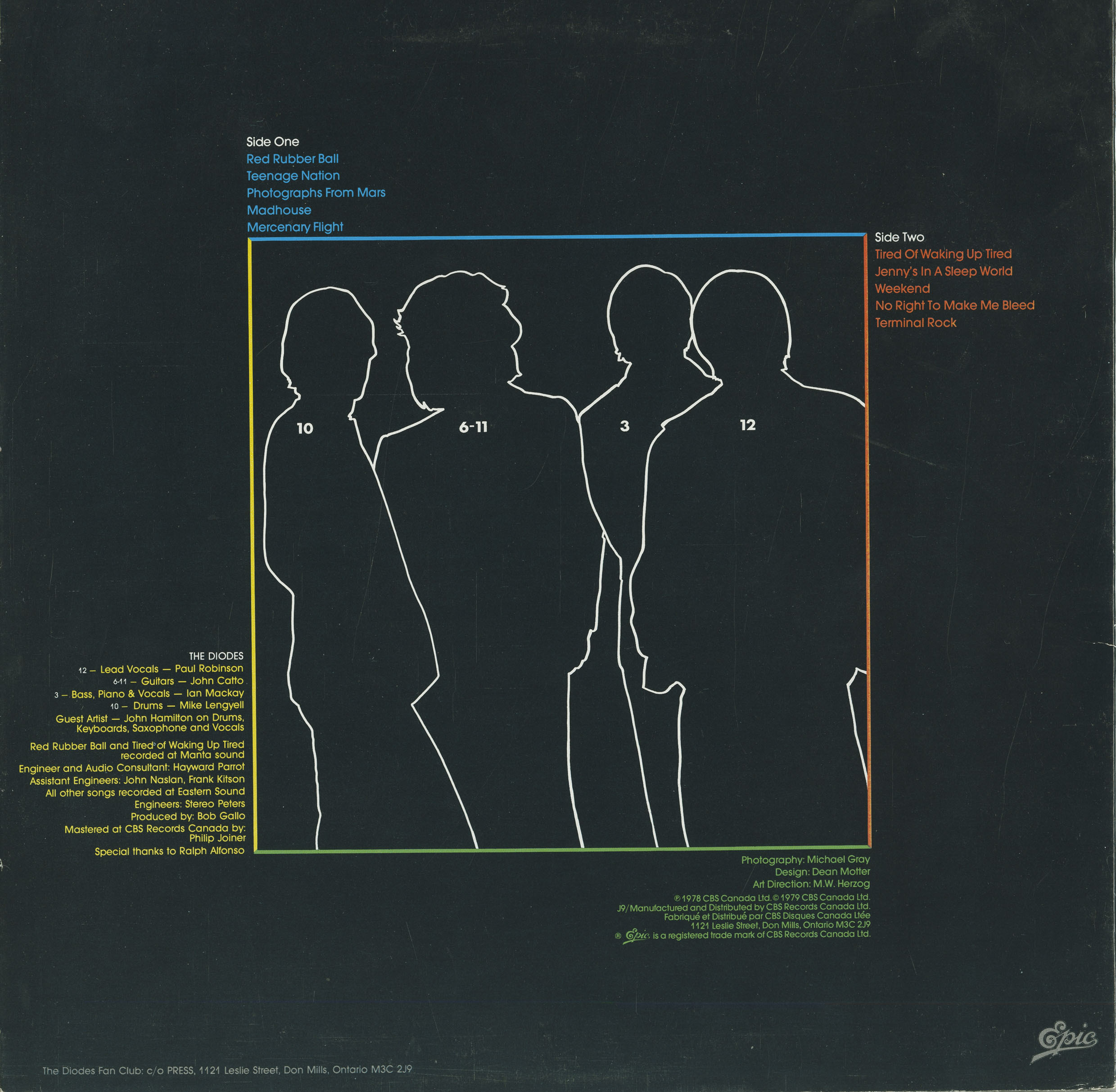 The band’s first single became their first public contradiction: a manic, weaponized cover of “Red Rubber Ball.” It was the Diodes’ way of turning an old pop artifact inside out — a bright 1960s melody re-wired with punk velocity and attitude. In Canada it charted modestly (enough to be historic in context), but in the U.S. it found a receptive “new wave” audience and proved the band could travel outside the local narrative Toronto press had built around them.