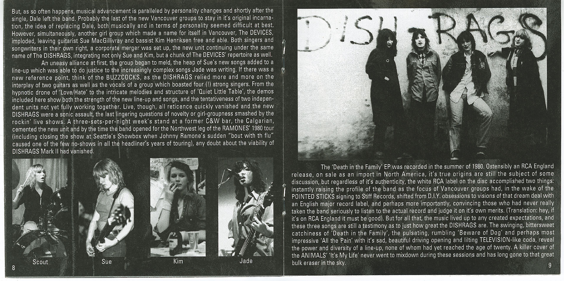 But as often happens, momentum came with internal strain. After the release of Past Is Past, Dale Powers left the group, and the original trio dissolved. At the same time, two members of another Vancouver all-female band, the Devices — guitarist Sue MacGillivray and bassist Kim Henriksen — became available. The Dishrags merged with the Devices, forming what fans later called “Dishrags Mark II.” With four capable singers and a more complex two-guitar attack, the new lineup moved toward a sound reminiscent of the Buzzcocks, with tighter song structures and increased melodic sophistication.