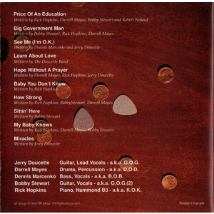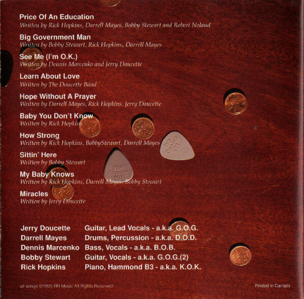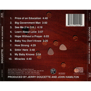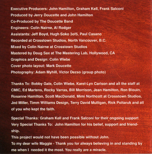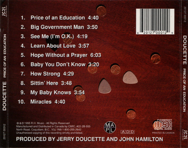 He nevertheless remained a constant presence on stages across British Columbia and the Prairies throughout the 1980s and ’90s. He eventually regained the rights to Mama Let Him Play and reissued it on CD. In 1995, he made a powerful return with Price of an Education, a blues-rock record engineered by Colin Nairne (Barney Bentall & The Legendary Hearts). Songs like Big Government Man, Miracles, and the title track were praised for their urgency and soul, and Doucette again hit the road with a seasoned lineup featuring Darrell Mayes (drums), Dennis Marcenko (bass), Bobby Stewart (guitar/vocals), and Rick Hopkins (keys).