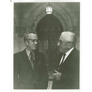 Tommy Douglas, 'The Greatest Canadian' released this album of his speeches and orations in 1971. The album was released in two versons, the standard jacket version and the boxed-set version. The boxed version came complete with a pictorial biography, a biographical essay, an 8x10 glossy photograph of Tommy Douglas and M.J. Coldwell, and a long playing record. The lp record has introductions and commentaries by Pierre Berton, and features selections from Tommy Douglas's greatest speeches and from his best-loved anecdotes and recitations, including the peroration of his 1945 speech against the attempted disallowance of Saskatchewan Legislation, portions of his adresses to the Canadian Labour Congress Conventions of 1968 and 1970, and his recitation of Burns's "A Man's a Man for A That", featured here. The record was edited by Laurier LaPierre and H.S. Lee.