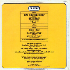 Arranged by: Doug Riley ('Long Time Comin' Home', 'In My Life', 'Tryin' Times', 'Doctor Doctor'), Keith Jollimore ('On The Road'), Steve Kennedy ('6-5', 'Rollin' Releases'), Dr. Music ('Rollin' Releases', 'Where Do We Go From Here')