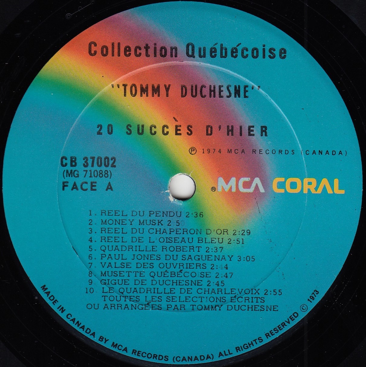 Duchesne, Tommy - Collection Québécoise - 20 Grands Succès D'hier Face A