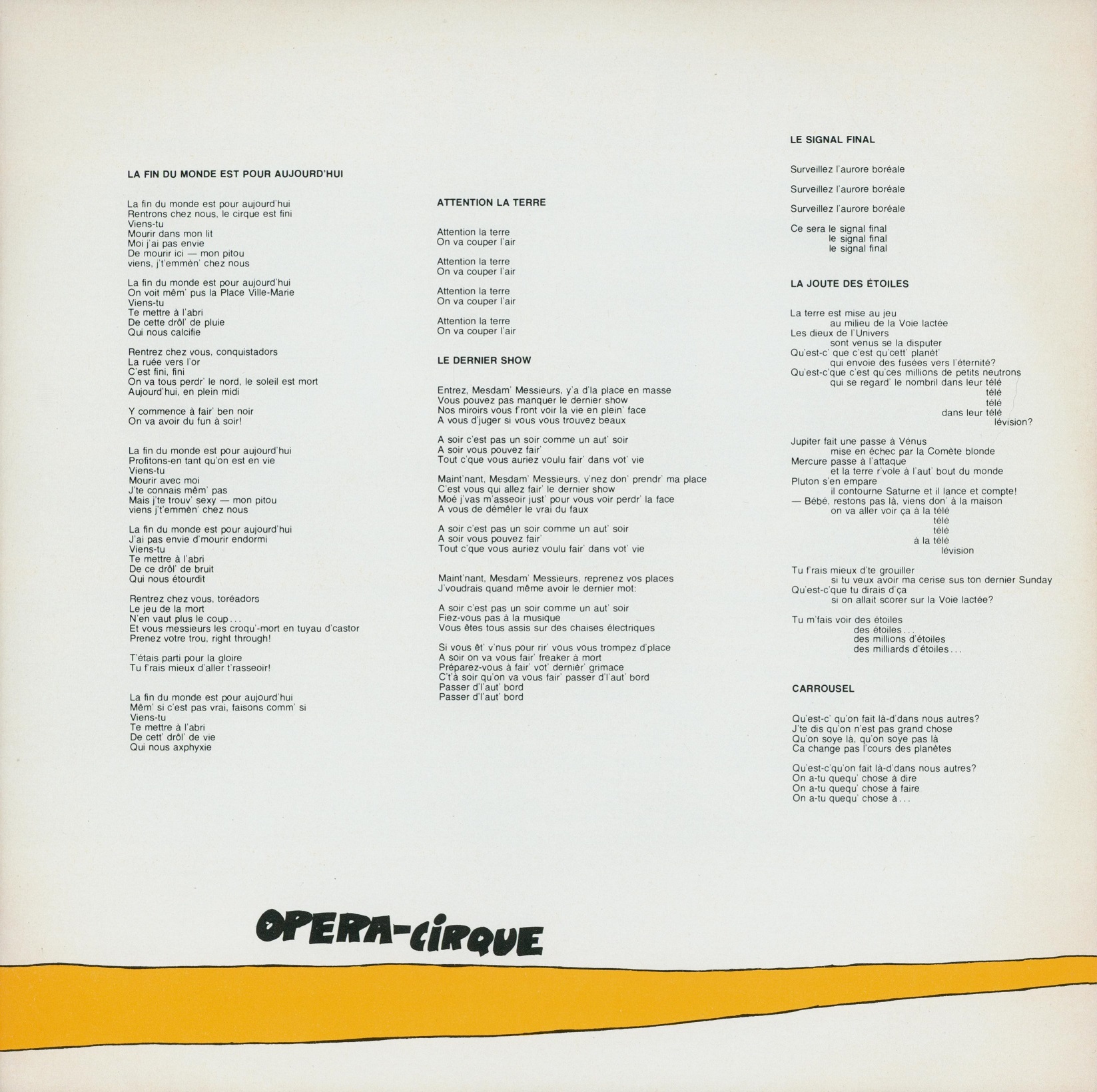 Due to being too advanced for the common French public, Barclay wouldn't release the album, however in 2008 the newspaper La Presse ranked the album as one of the best 50 Quebec albums of the century. The album has always been a favourite of Robert Williston for as long as he remembers and cracks his MoCM top 100 Canadian albums of all-time. The album must be played loud on vinyl for full effect.