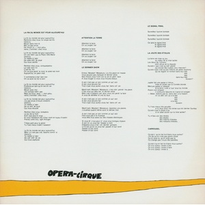 Opera-Cirque, her second solo long play, stretched that persona into new territory and into a new dimension.....wild eccentricity, raging apolcalyptic, fiercely Nationalistic, superbly original, controversial stage appearances, nudity (front cover), flamboyancy on another level alltogether.....but always with remarkable results (and long before Madonna attained stardom with her own flamboyant persona).