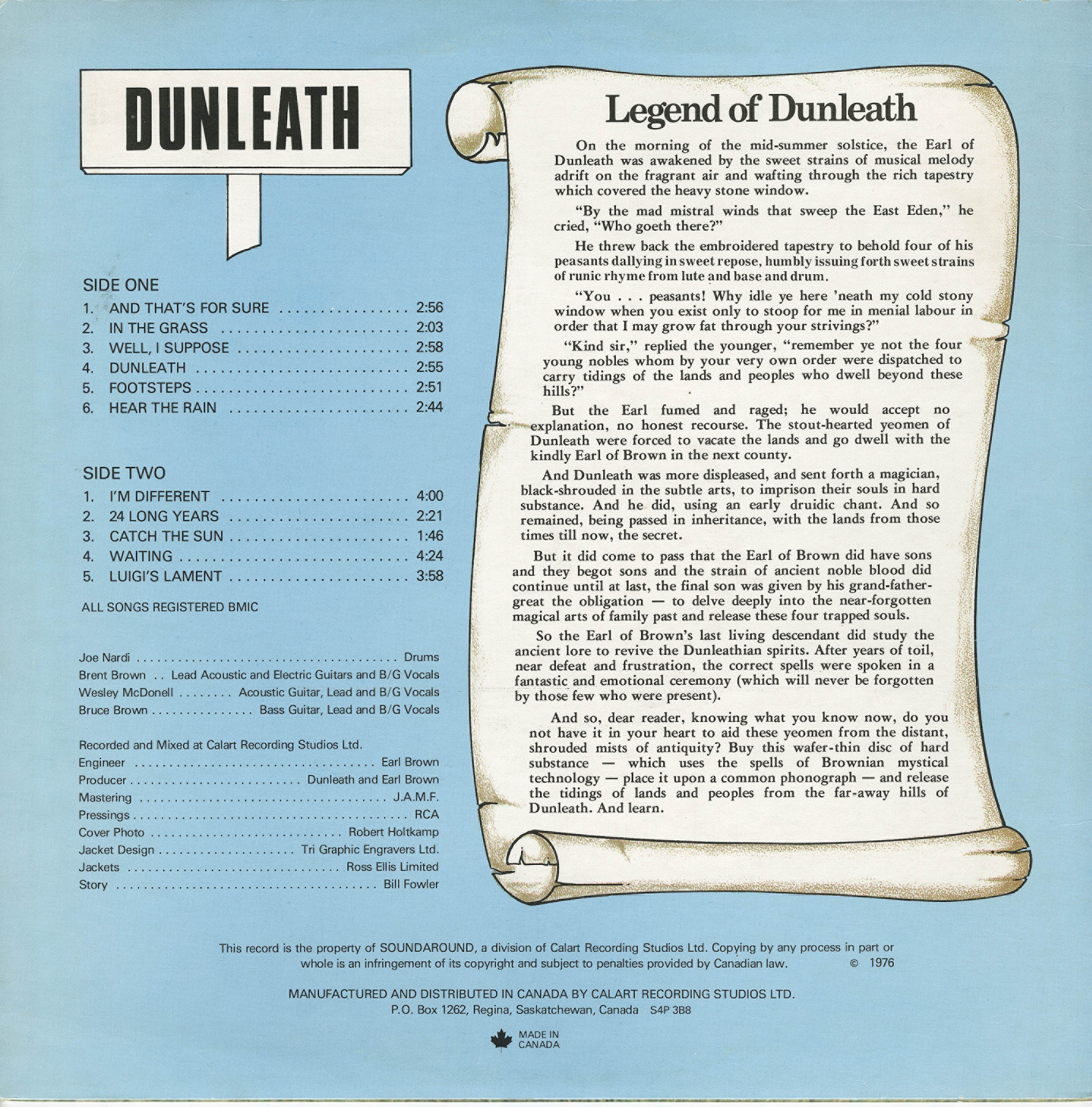 Recorded and mixed at Calart Recording Studios in Regina, Saskatchewan