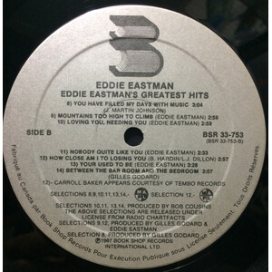 Despite the success, however, distribution problems plagued Eddie in the early 1980s. Small independent labels like Bel-Air Records, Bookshop Records, Diamond Records, and Artisan Records in Nashville, which Eddie entrusted at various times with the distribution of his material, had to compete in a market dominated by major labels who were industriously marketing their own artists. Consequently, and possibly with repercussions for his songwriting, Eddie toured at a gruelling pace in order to maintain his profile and help sell his material.