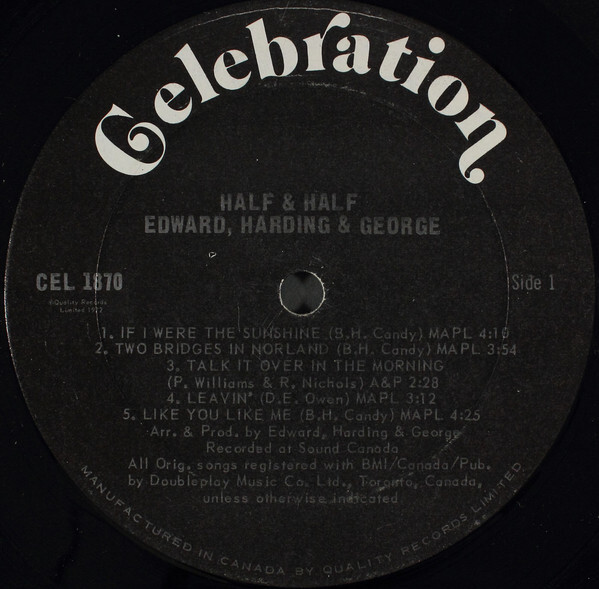 Their rising profile brought them management and a two-album contract with Celebration/Quality Records. Their self-titled 1971 debut introduced their warm harmonies, soft acoustic folk, and lightly psychedelic pop. “Mr. Sunlight” became their best-known song, reaching No. 74 on RPM’s Top 100, and the album featured contributions from flutist Jack Zaza, keyboardist Mark Altman, drummer Brian Leonard, bassist Robert Price, and the Ivan Romanoff Strings. A second LP, Half & Half (1972), widened the songwriting and brought bassist George Korenko into the fold. Both albums are now prized artifacts of early-1970s Ontario folk-pop.
