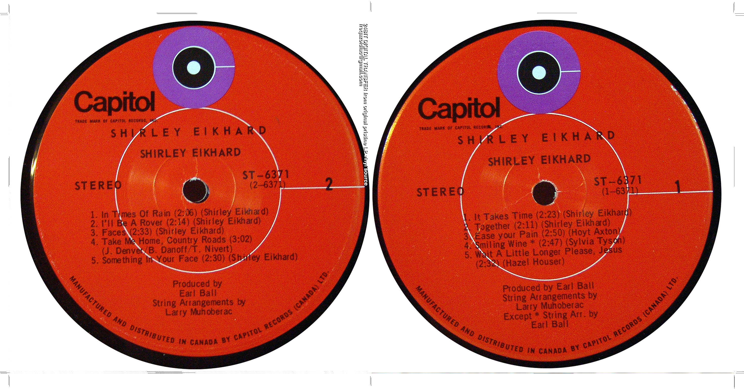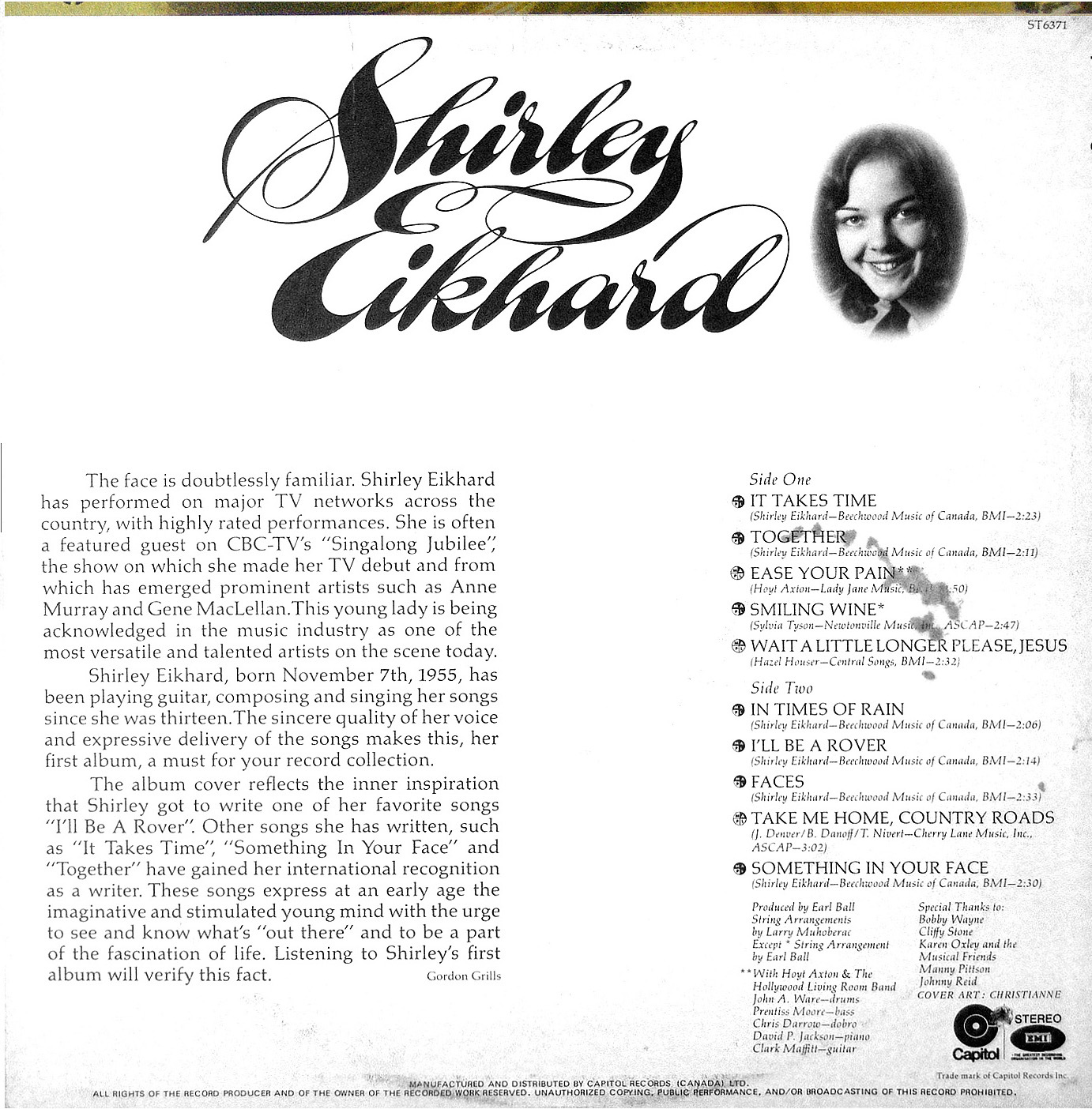 Shirley Eikhard, born November 7, 1955, has been playing guitar, composing, and singing her songs since she was thirteen. The sincere quality of her voice and expressive delivery of the songs makes this first album a must for your record collection.