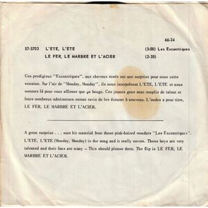 Excentriques, Les - Le Fer, Le Marbre Et L'Acier (Marble Breaks And Iron Bends) b/w L'Été, L'Été (Monday, Monday) (picture sleeve)
