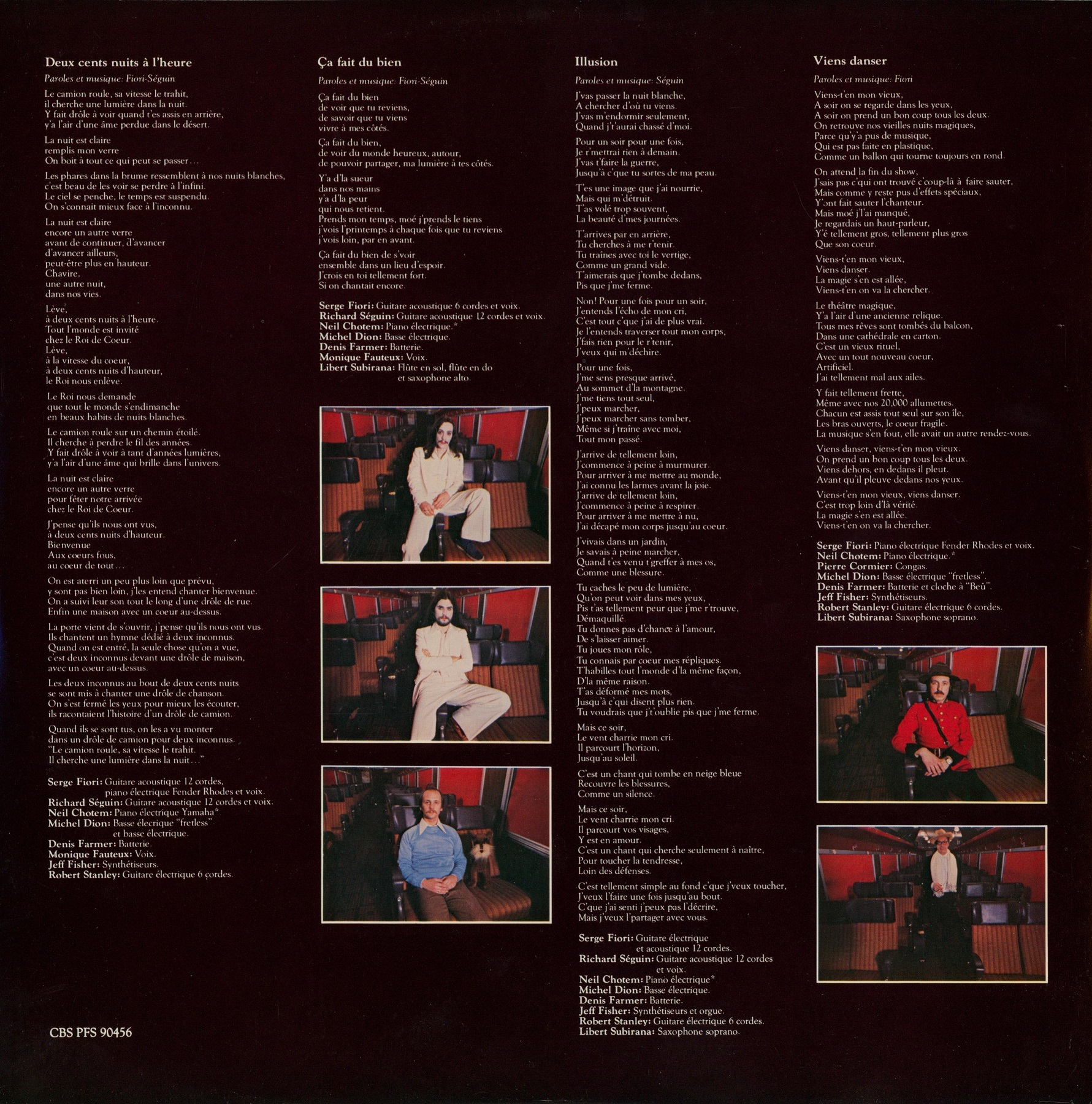 Released in 1978 on CBS Records Canada, the album masterfully balanced the lush, layered instrumentation characteristic of Harmonium’s late period with the accessibility and lyrical depth of Séguin’s songwriting. Alternating between co-written pieces and individual compositions, the record offered a perfect synthesis of their styles. Songs like the soaring title track, the playful Viens danser, and the intimate Chanson pour Marthe captured an emotional and musical range rarely achieved in popular music. The arrangements, enriched by the talents of Harmonium veterans Neil Chotem, Libert Subirana, Denis Farmer, and others, gave the album a polished, organic sound that remains timeless.