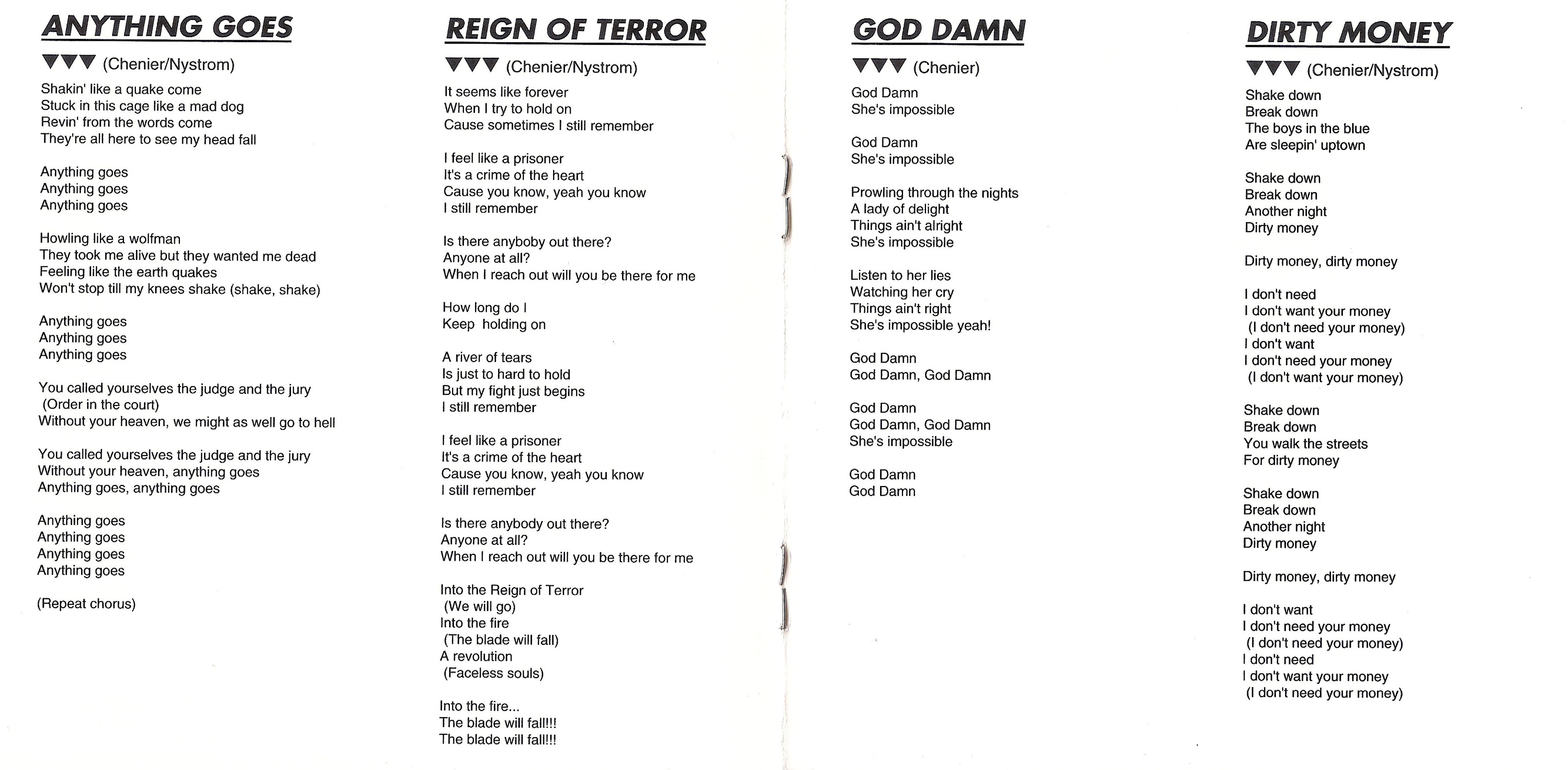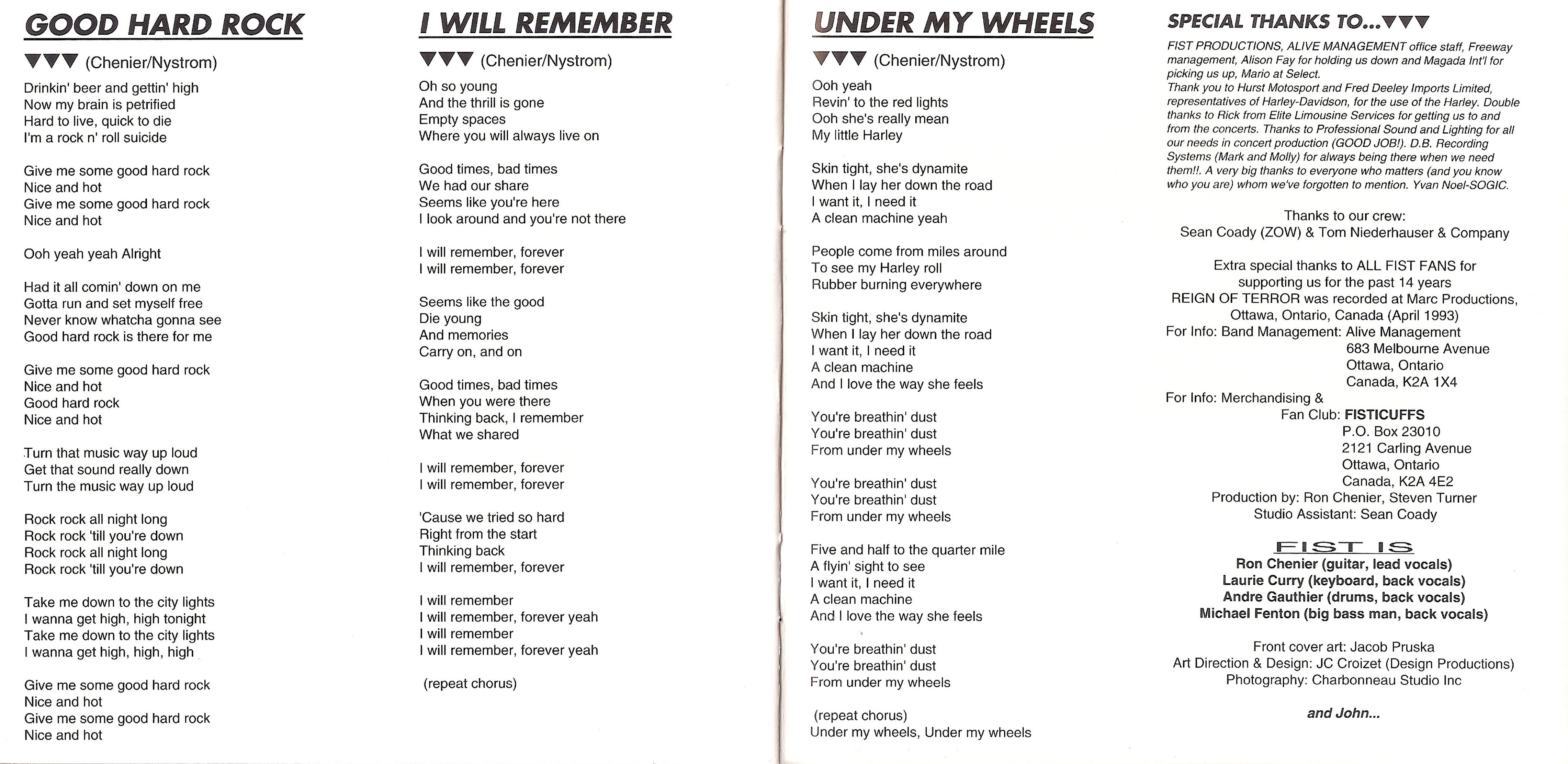 After a six year sabbatical Fist recorded their sixth album titled Reign of Terror. Recorded in Ottawa, engineered and produced by Ron Chenier and Steve Turner, Reign of Terror was distributed world wide on Magada Int’l. There was a Canadian tour but no US or European tour.