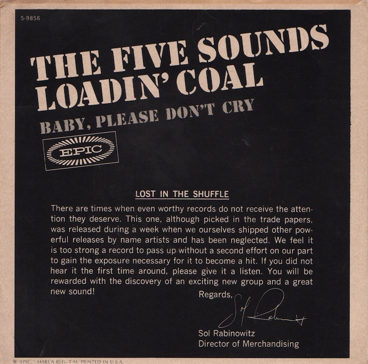 “Loadin’ Coal” b/w “Baby, Please Don’t Cry.” While the track didn’t break into national charts, it received strong airplay on Halifax’s CHNS and was later praised by Epic’s merchandising director Sol Rabinowitz, who called it a “worthy record” that had been “lost in the shuffle.” The single was singled out internally as being "too strong a record to pass up."