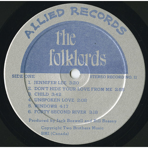 The Folklords toured, "but didn't get much support from Allied". They appeared on a few TV shows, "but it wasn't an easy time in Canada in those days", Tom writes. He continued "We split the group in late '69 and that is when I started a solo career before forming some different groups of which I will tell you more about later. The response The Folklords have had over the past 10 years is just astounding I get mail from around the world and quite a bit of airplay on college radio"