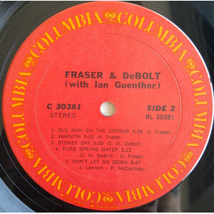 The reason for all of this passion is the same reason the record sold squat: it's full of gorgeous ragged edges and inspired imperfections. It's human and heartfelt with no pretense or gloss. We're not talking idiot savant (I won't name examples here, as I don't want to offend anyone); it's as insulting to Fraser & Debolt to lump them with "real people" or "incredibly strange" music as it would be to Bobb Trimble. Every out of out-of-tune violin lick (courtesy of Ian Guenther, who gets credit in the album title), every backing vocal that starts too early or comes in too late, and every dissonant guitar chord is intentional (or at least a brilliant performance accident retained after much thought.) This may be raw; it may be loose, and it sure is fun, but this album is arranged with as much foresight as any 70s prog record. On all but one song (which adds sax and piano) the musical backing is merely two acoustic guitars and violin, often arranged with a punk-like simplicity. Yet every song sounds full and rich, each is different from the others, and the unique approach to dual vocals fills the songs with left turns, sublime beauty, and moments that will make the most jaded listener smile. It's been called "art-folk," which is as good a description as any. It's also rock and roll without electricity or drums, and acid folk without any of the daze or confusion.