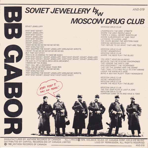 Gabor, BB - Nyet Nyet Soviet (Soviet Jewelry) b/w Moscow Drug Club (picture sleeve)