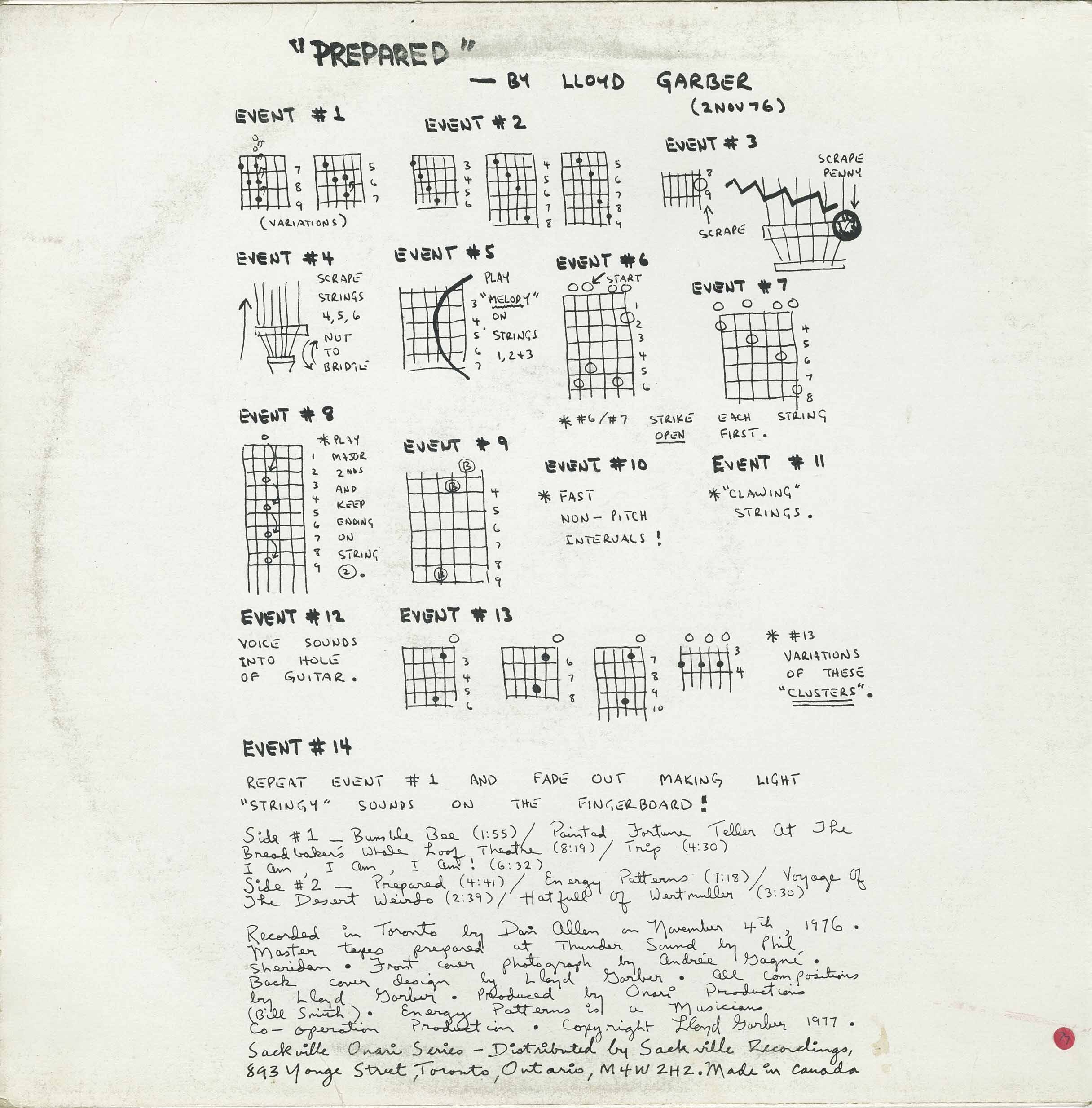 The first impression this record made on me that although it was made in Canada, the style of the music was decidedly not North American. Garber's free form guitar playing has a European ring to it, and indeed a brief earful might convince you that you were listening to a certain British guitarist who is after all, leading the world in free guitar playing. But it's not just the notes which give that impression. It's the European humour too. On one track, the guitar is gradually swamped by a chorus of alarm clocks; a device you might expect from shhh you know who.