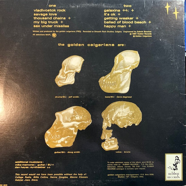 Looking back, the Golden Calgarians stand as one of the great cult bands of the Prairie underground: fiercely local, proudly self-made, and completely uninterested in tailoring their sound for industry expectations. They wrote about what they knew—fast food joints, Cold War absurdity, romantic misfires, suburban boredom—and played with the conviction of people who believed rock and roll could still save something, even if that something was only the night itself. Their mix of garage grit, deadpan humour, and wide-open Calgary attitude made them one of the most distinctive voices in the city’s musical history. For those who heard them live, caught them on CJSW, or tracked down the surviving tapes, the Golden Calgarians were nothing less than a Prairie original: the most popular band almost nobody ever heard of, and one that remains due for rediscovery.