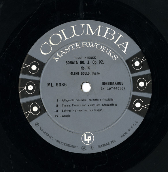 Gould, Glenn - Berg: Sonata for Piano, Op. 1; Schonberg: Three Piano Pieces, Op. 11; Krenek: Sonata No. 3 for Piano, Op. 92, No. 4