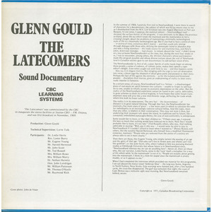 In 1969, Gould made The Latecomers, about life in Newfoundland outports, and the province's program to encourage residents to urbanize.