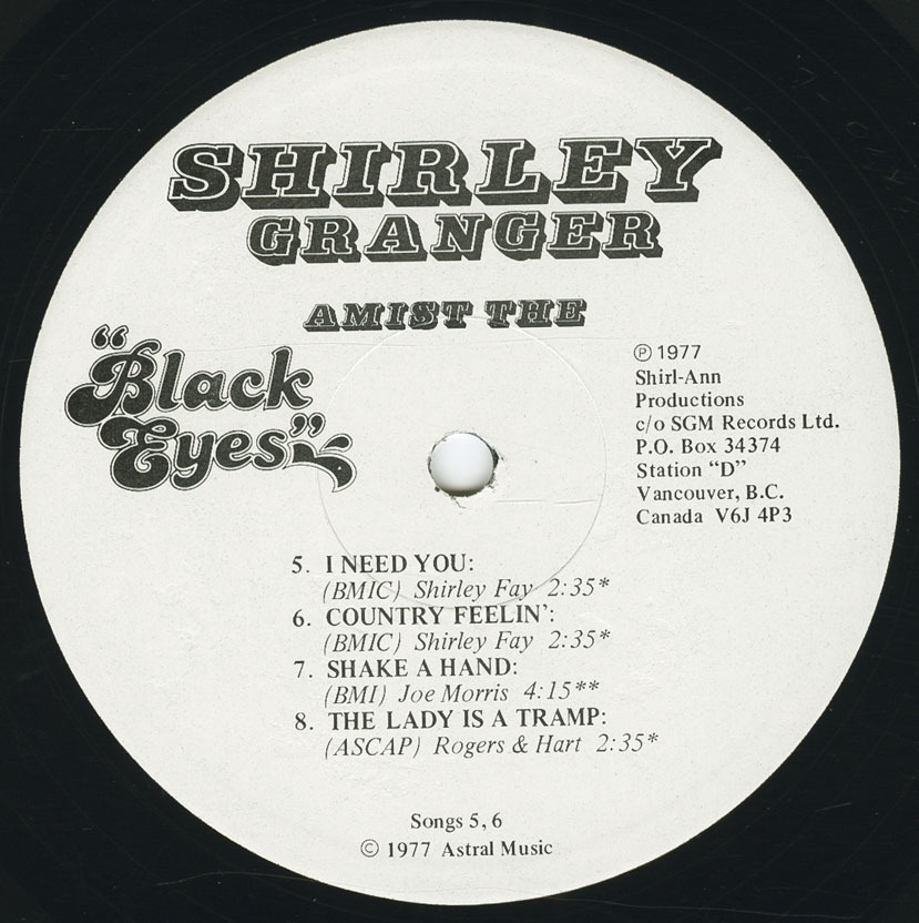 Her LP Black Eyes, recorded at SGM Studios in Vancouver and released in 1977, captured this period. Blending soul, gospel medley, standards, and original compositions written under the name Shirley Fay, the album stands as a rare and unusual artifact of British Columbia soul recording culture.
