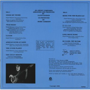 A unique highlight of the album’s sound comes from Hanson’s use of a six-string fretless F Bass, originally owned by Alain Caron of the Montreal jazz-fusion band Uzeb. This bass, the first of its kind made by F Bass, became Hanson’s primary instrument for jazz and progressive folk performances throughout the 1990s. Hanson’s connection to Caron came full circle when, over a decade after The Great Debate’s release, he learned that Caron had been impressed by the album, solidifying its impact on Canada’s jazz scene.