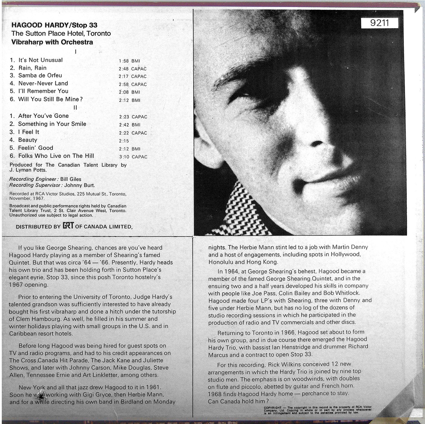 Recorded at RCA Studios, 225 Mutual St., Toronto, Ontario, November, 1967