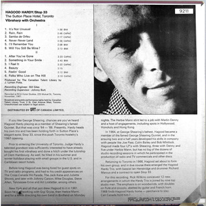From 1957 to 1961, Hardy led his own groups on CBC Radio and in Toronto clubs before heading south to New York. There he became part of the international jazz circuit, performing and recording with Gigi Gryce, Herbie Mann, Martin Denny, and George Shearing — appearing on multiple albums with each. He credited Shearing as his greatest influence, and the relationship honed the lyricism that became central to his own writing.