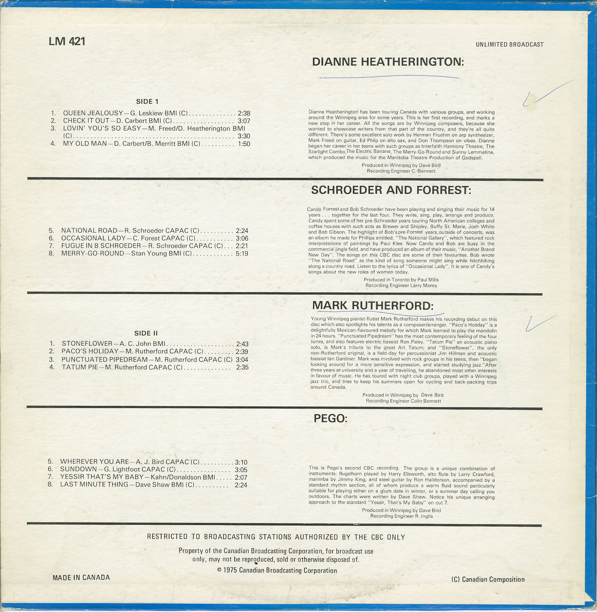 Label: CBC Radio Canada LM 421