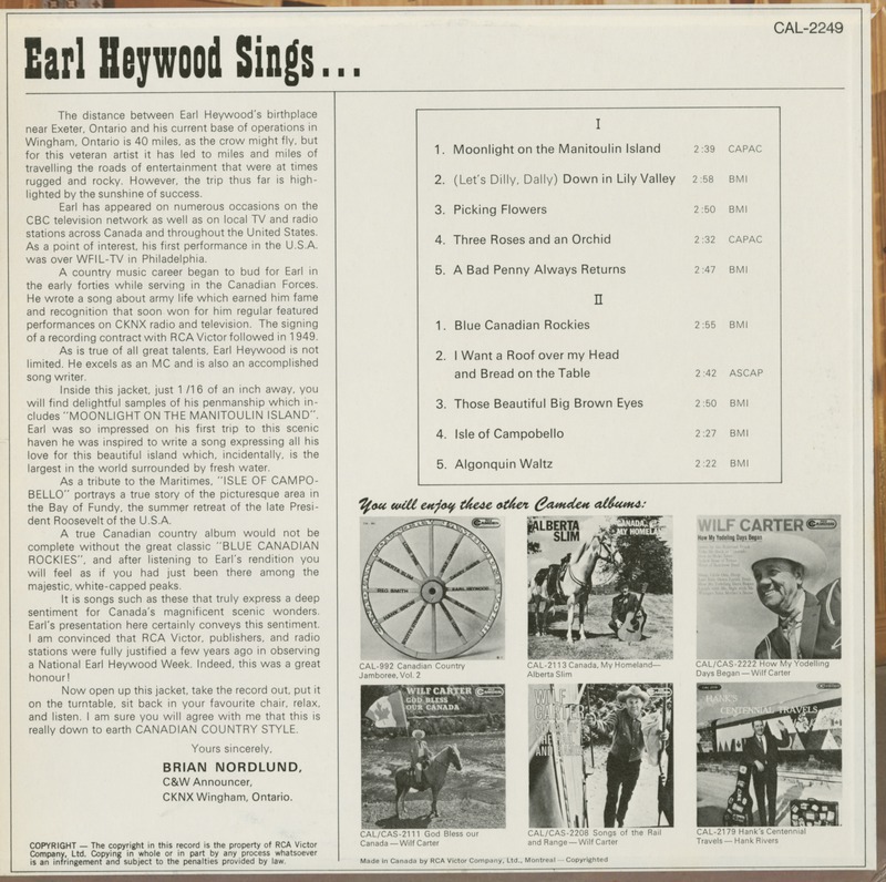 Country & Western, Ontario, 1960's, Singin' Canadian Cowboys And Cowgals