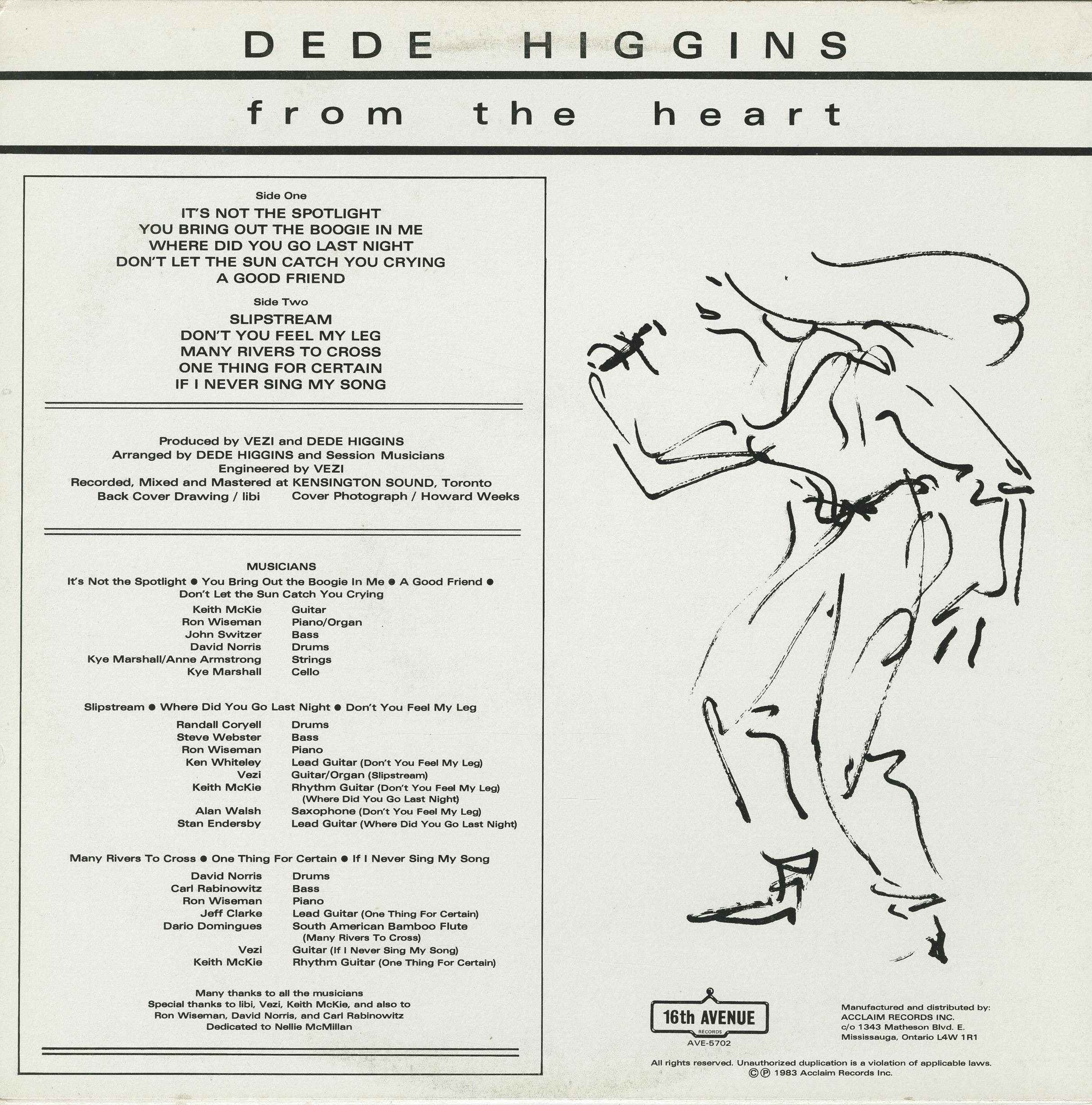 Manufactured and distributed by Acclaim Records Inc., c/o 1343 Matheson Boulevard East, Mississauga, Ontario, Canada