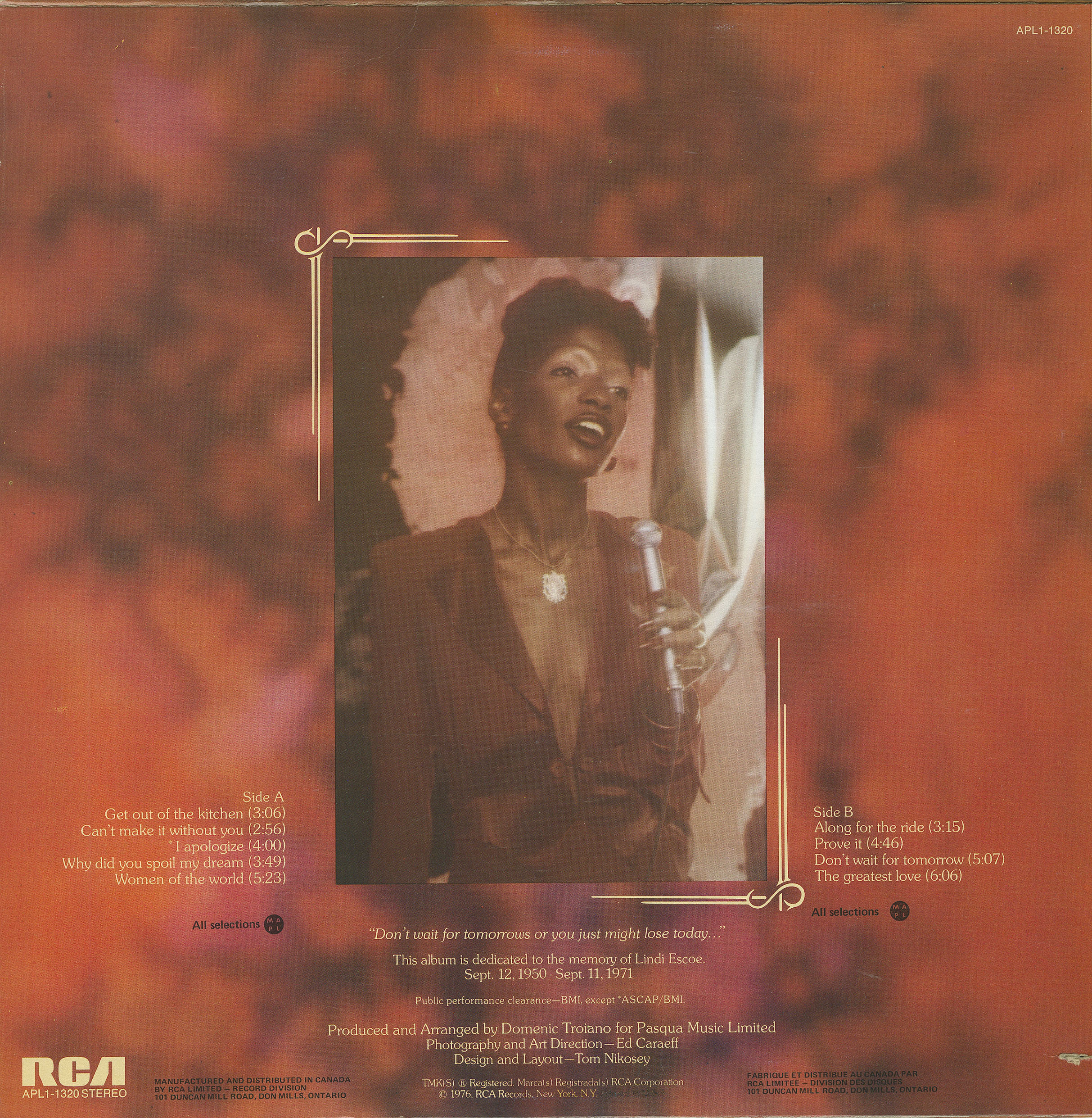This album is dedicated to the memory of Lindi Escoe Sept 12, 1950 - Sept 11, 1971