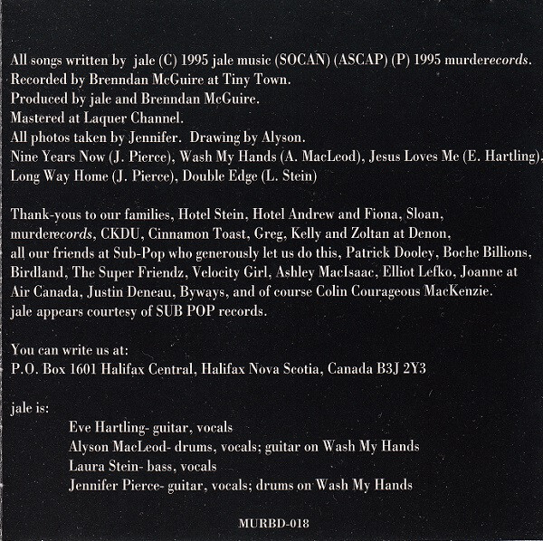 In early 1997, Eve Hartling stepped away to focus on raising a family, and the remaining members—Pierce, Stein, and Belitsky—reformed as The Vees, releasing a final EP on Murderecords later that year. Jale’s brief but luminous run remains one of the defining stories of the Halifax Pop Explosion: four art-school musicians who, in the span of five years, helped carry the city’s music from local clubs and hand-folded seven-inches to international recognition, without ever losing the melodic sensibility or collaborative spirit that shaped their beginning.