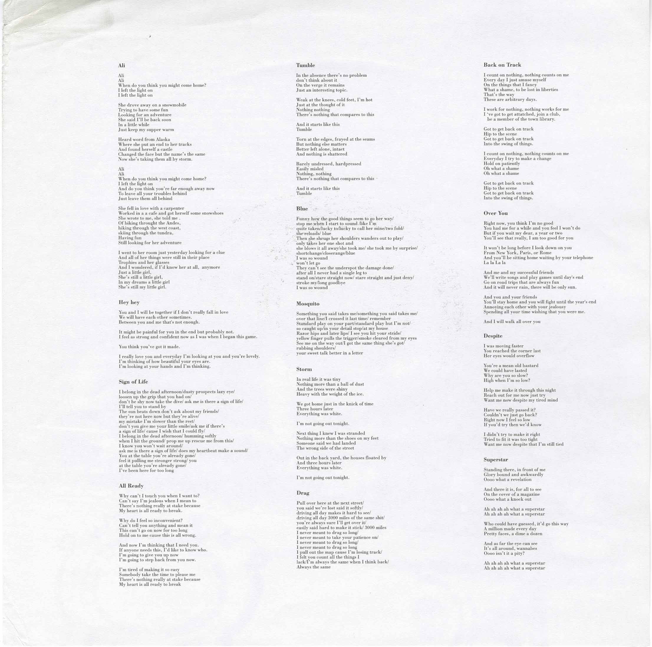 Includes full-size insert with lyrics and credits