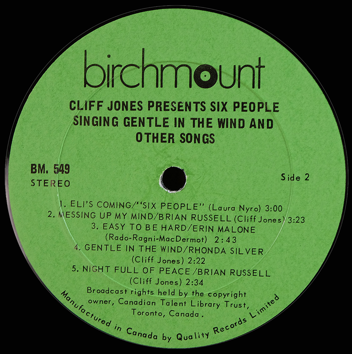 Produced by Cliff Jones and arranged by Jim Pirie at RCA Studios in Toronto, the album reflects the Canadian Talent Library approach: assemble proven broadcast talent, balance contemporary repertoire with original compositions, and present it within a polished studio framework. It stands as a document of Toronto’s television-driven pop culture at the dawn of the 1970s.