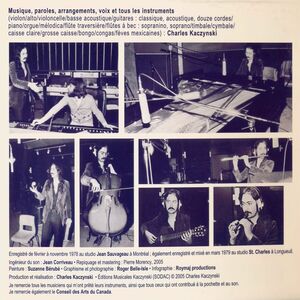 Charles Kaczynski: vocals, violin, cello, acoustic guitar, organ, flute, bongos, congas
