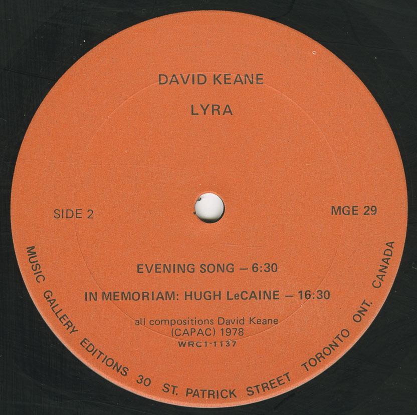 Keane was an Associate of the Canadian Music Centre and a member of the Canadian League of Composers, and he is represented on dedicated albums—Lyra, Aurora (Electroacoustic Tone Poems), and Dialogics—as well as on compilations such as The Anthology of Canadian Music. His vinyl-era output was later gathered in a two-disc anthology issued in April 2023, drawing together Lyra (Music Gallery, 1979), Aurora (Cambridge Street Records, 1985), and his CAPAC “Portrait Musical” single, with contextual material from the original releases.