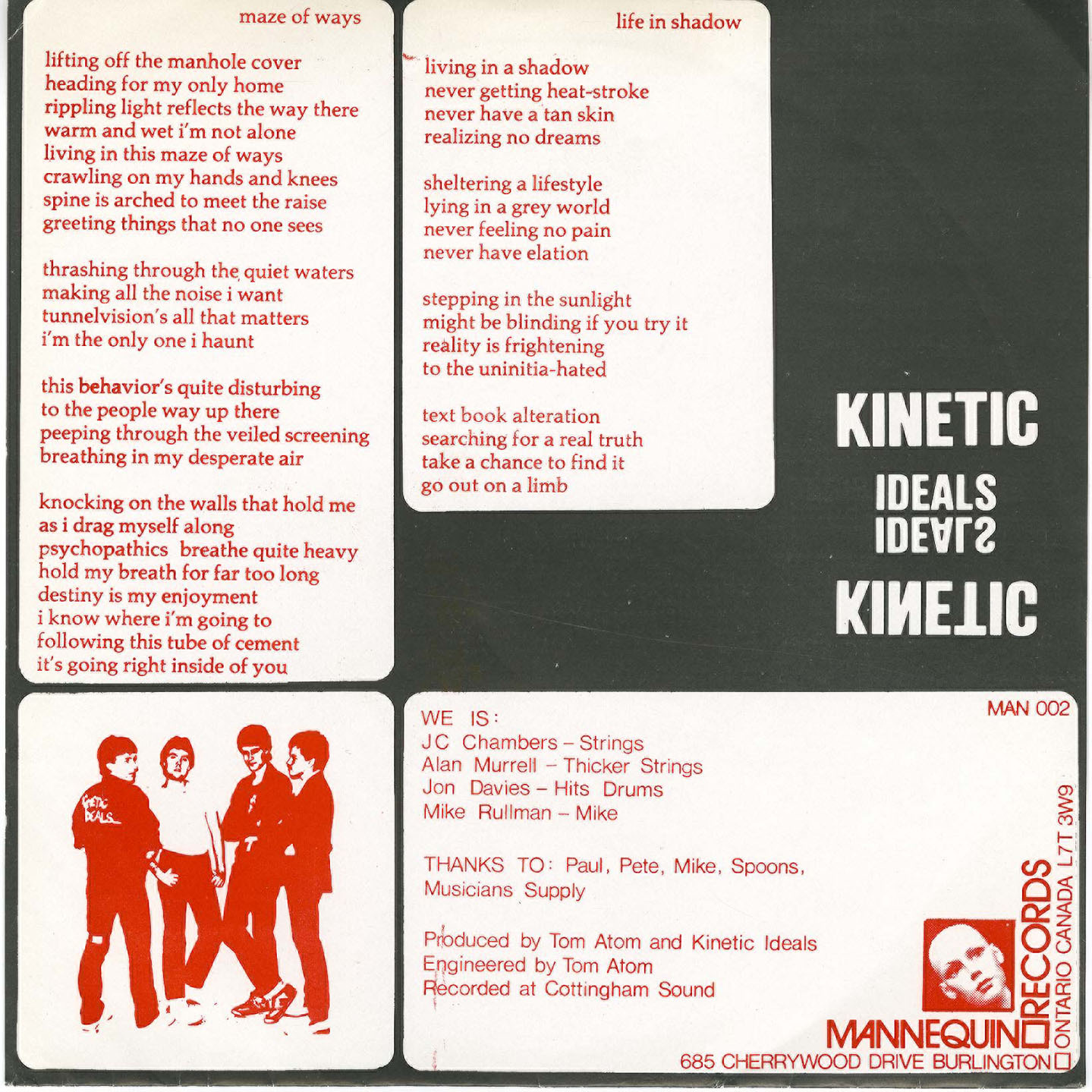Kinetic Ideals emerged in 1980 out of Streetsville, a quiet corner of Mississauga that was far removed from Toronto’s high-profile downtown venues but close enough for ambitious young musicians to feel the gravitational pull of the city’s post-punk explosion. The original lineup—Mikil Lee Rullman on vocals, J.C. Chambers on guitar, Alan Murrell on bass, and Jon Davies on drums—formed a tight unit almost immediately, rehearsing relentlessly and developing a sound anchored in wiry guitar lines, heavy rhythmic insistence, and the kind of nervous intensity that defined the early ’80s underground.