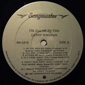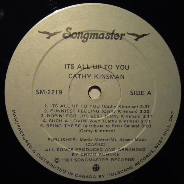 Her transition into recording came at the start of the 1980s through Songmaster Records, where she released a run of singles and her debut LP, It’s All Up to You. Produced and arranged by Craig Ruhnke, the album presented Kinsman as a songwriter in full control of her material, working within a polished adult-contemporary and folk-rock framework. Singles from this period included ‘Flying So High,’ ‘Such A Lovin’ Way,’ ‘It’s All Up to You,’ and ‘In The Movies,’ the latter recorded as a duet with Ruhnke.
