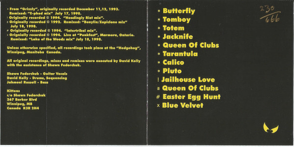 Their early cassettes and 7-inches earned attention for their crushing low-end and chaotic approach, but it was their association with Hamilton’s Sonic Unyon label that brought them wider exposure. Sonic Unyon became a crucial hub for heavy music in Canada and helped circulate Kittens’ releases far beyond their hometown. Between 1992 and 1998 the band released a steady torrent of EPs, singles, and full-lengths including Like a Plough, Calico, Doberman, Tiger Comet, and the fan-favourite collection Low-Fi Classics and Other Rarities.