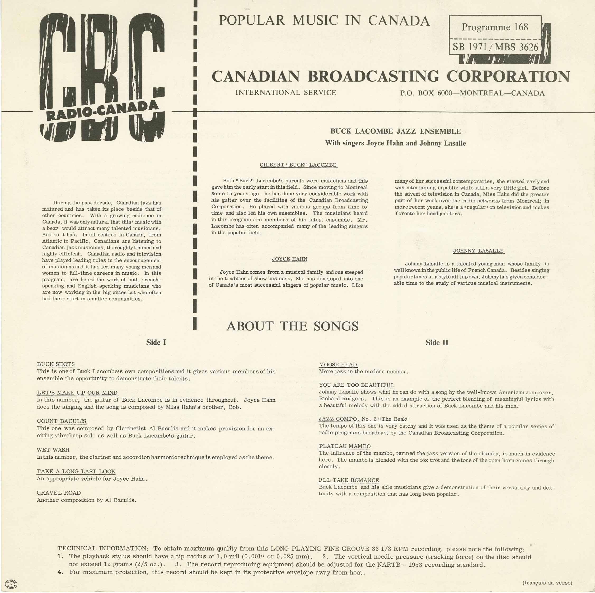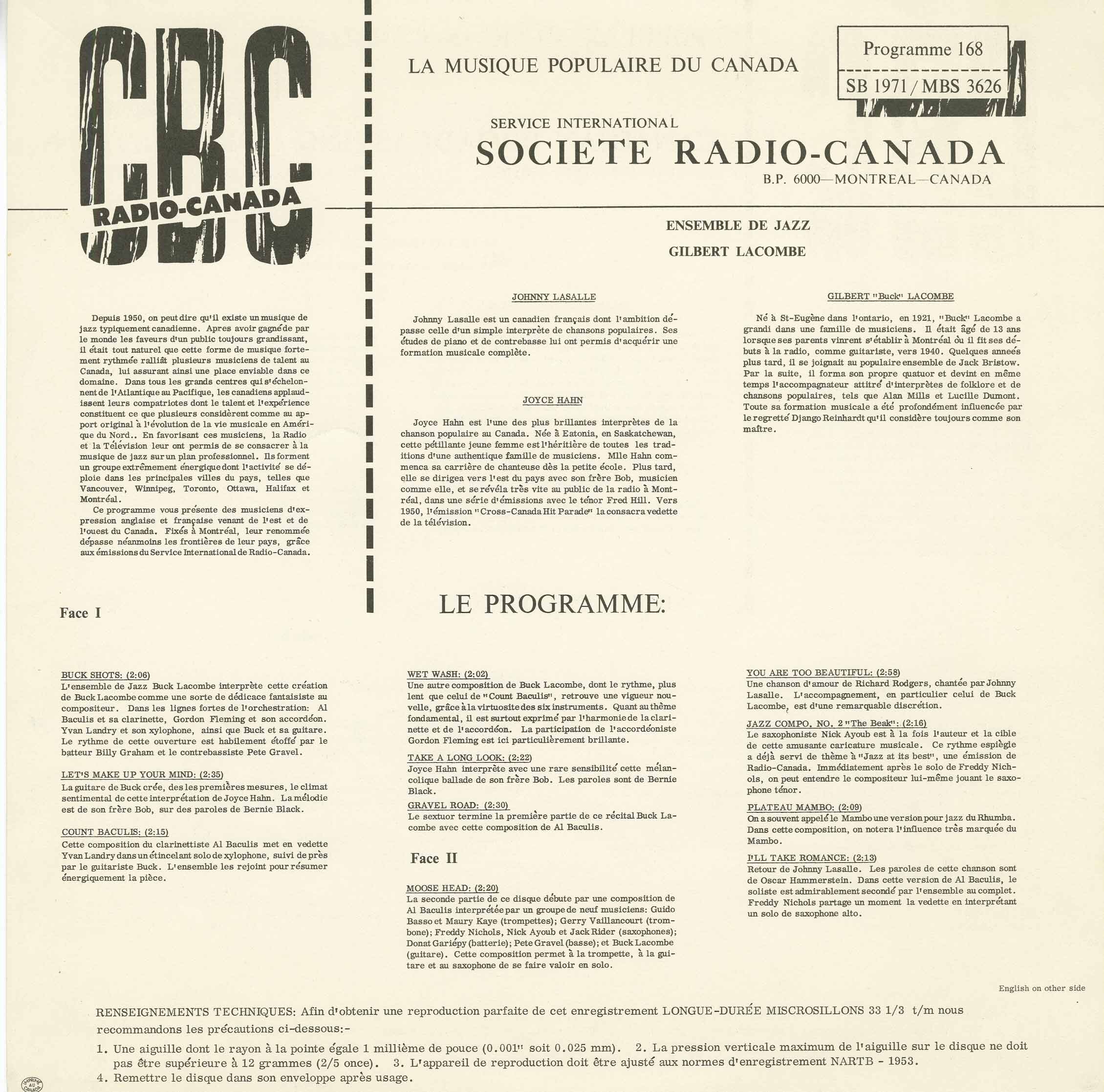 Label: Radio Canada Programme 168
