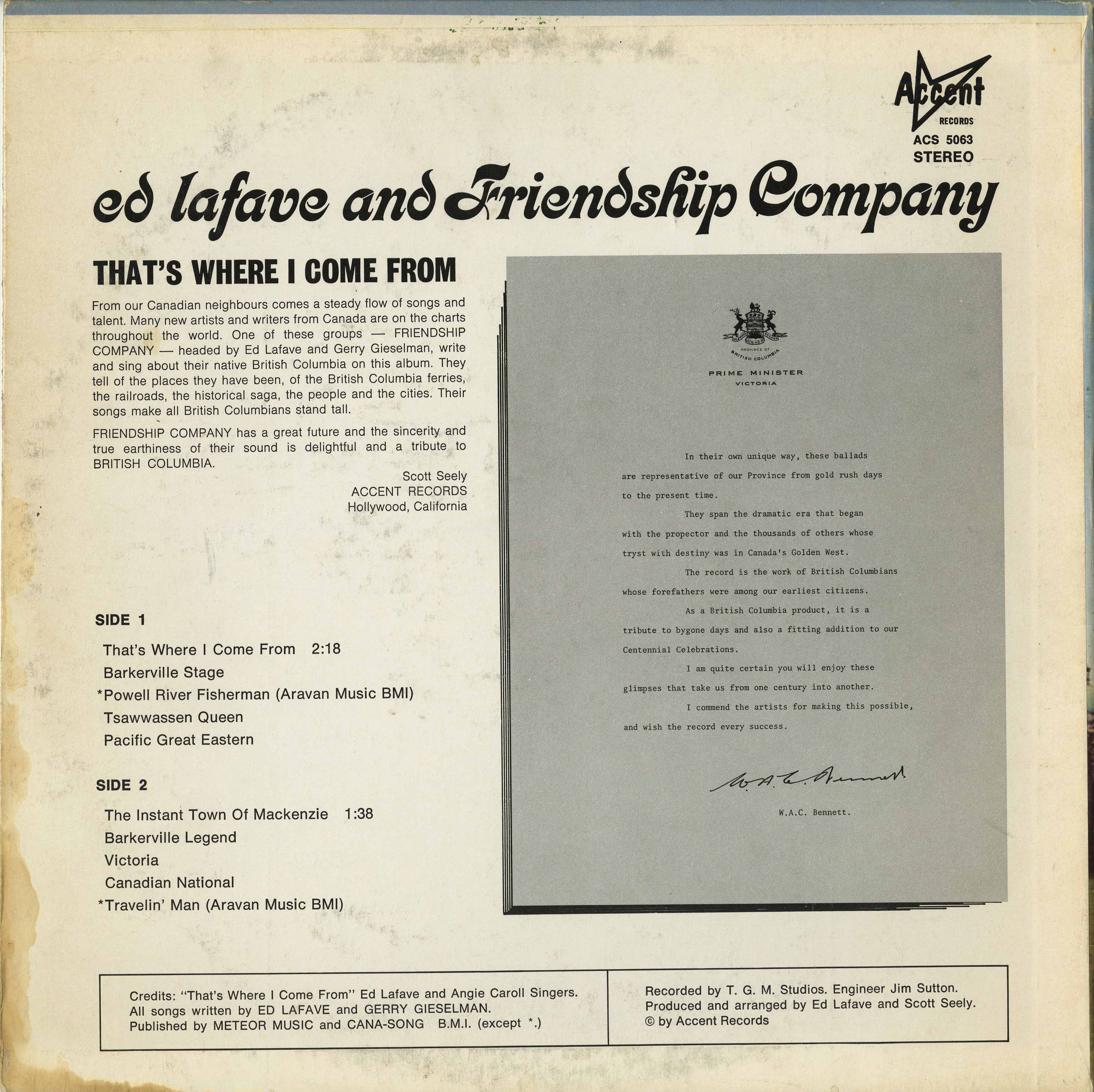 Lafave, Ed & Friendship company - That’s Where I Come From: A Centennial Tribute to British Columbia