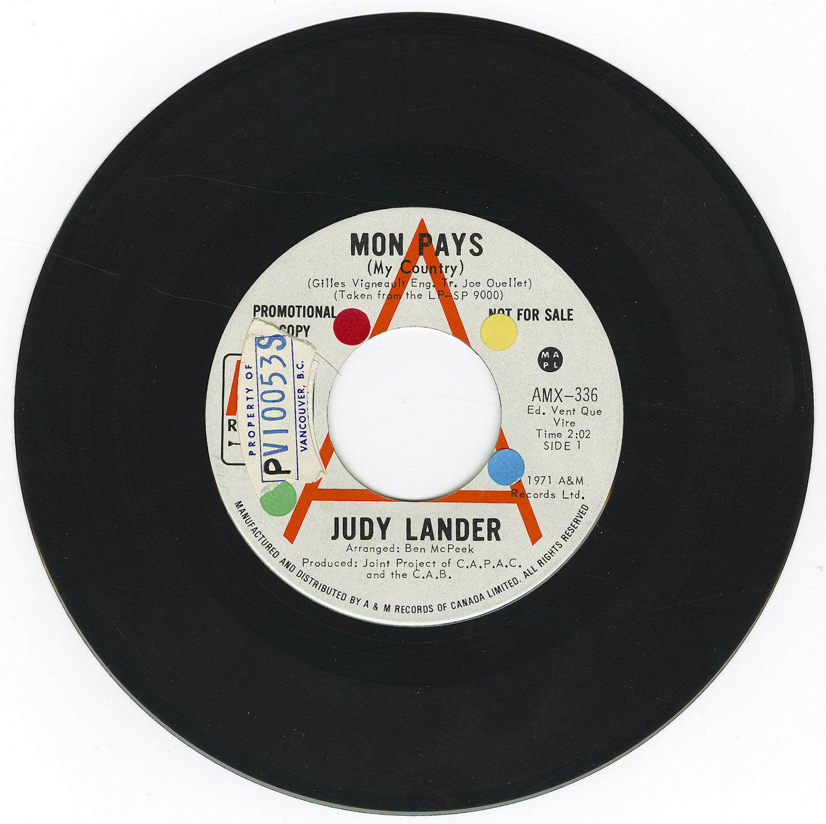 Judy Lander - Mon Pays (My Country) b/w Weepland