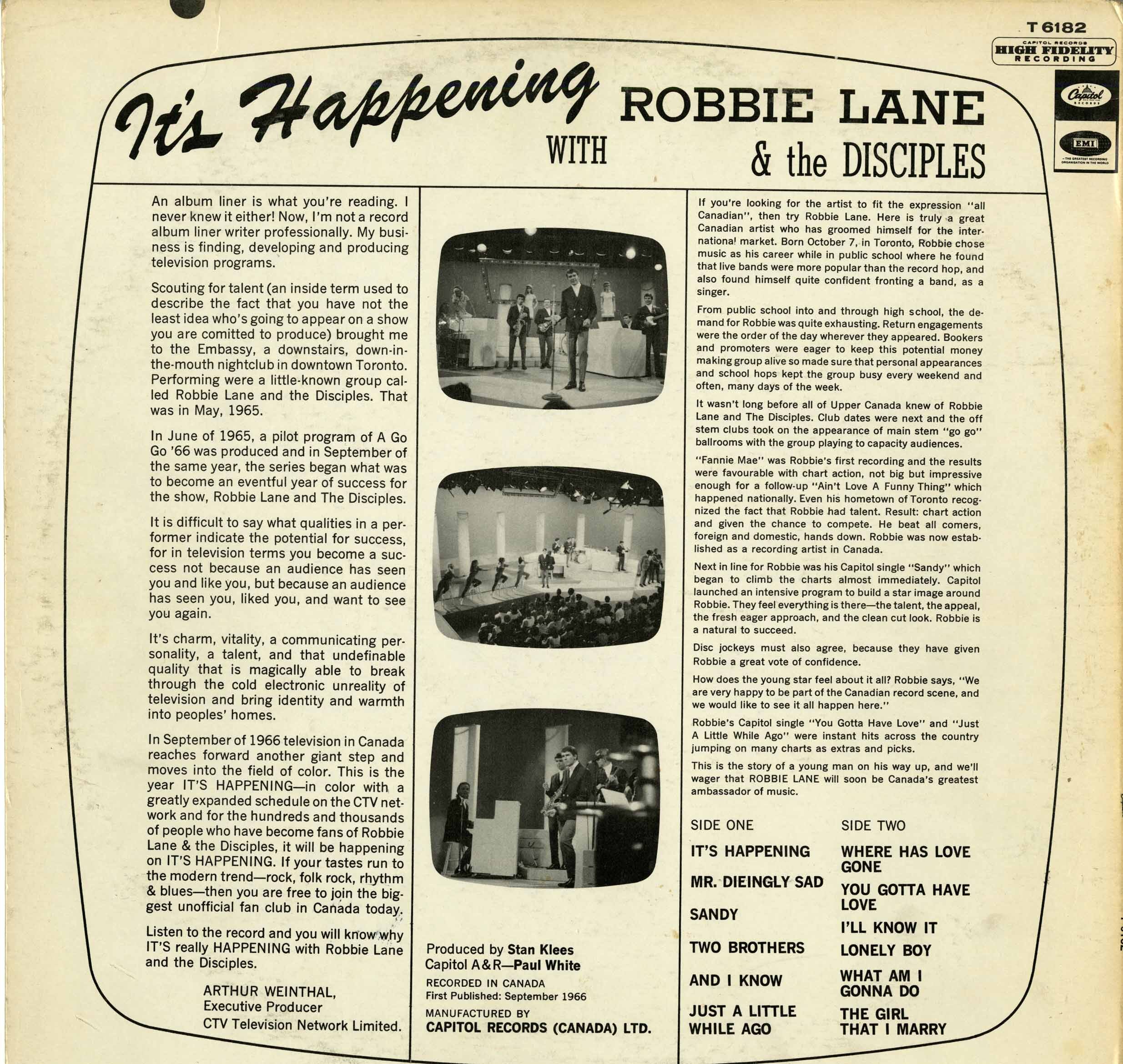In 1964, Robbie Lane and The Disciples scored a modest hit with Ain’t Love a Funny Thing, produced by Fred Carter. By June 1965, the band parted ways with Ronnie Hawkins and began carving their own path. Their transition was marked by a challenging year, but they re-emerged in 1966 as the house band for CTV’s popular music show It’s Happening.