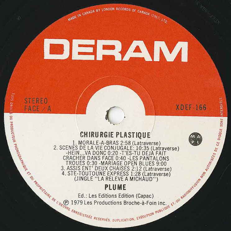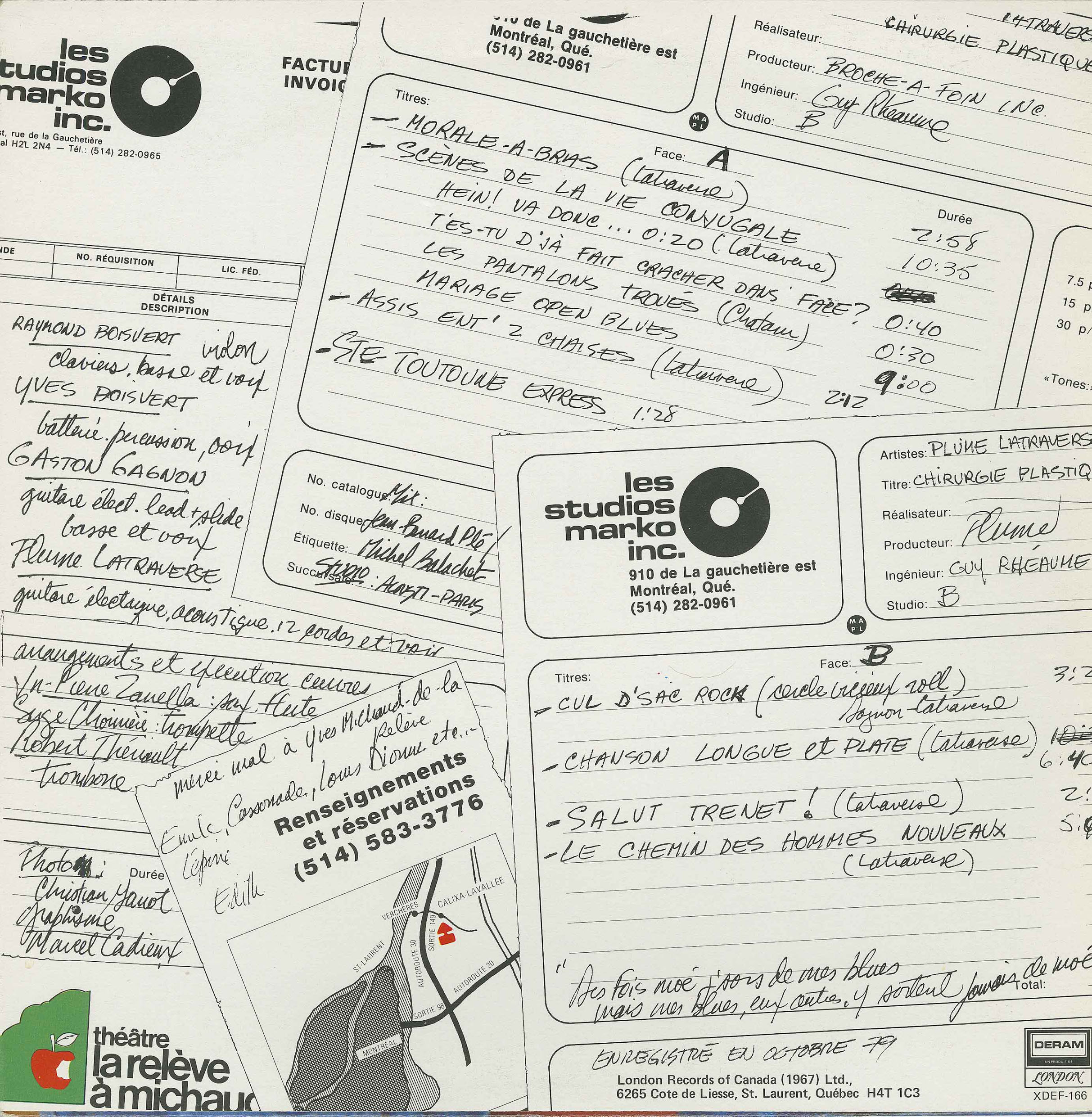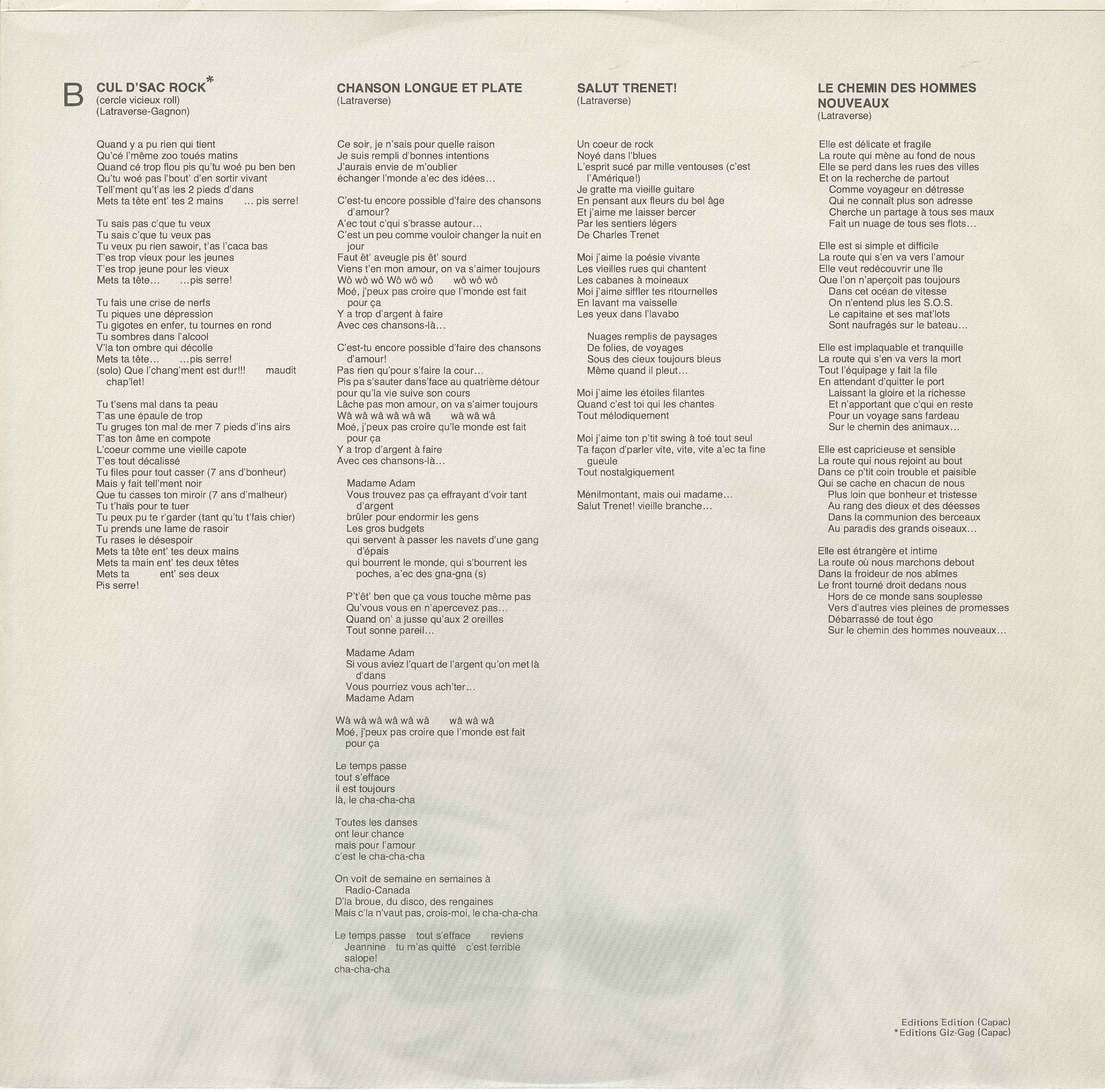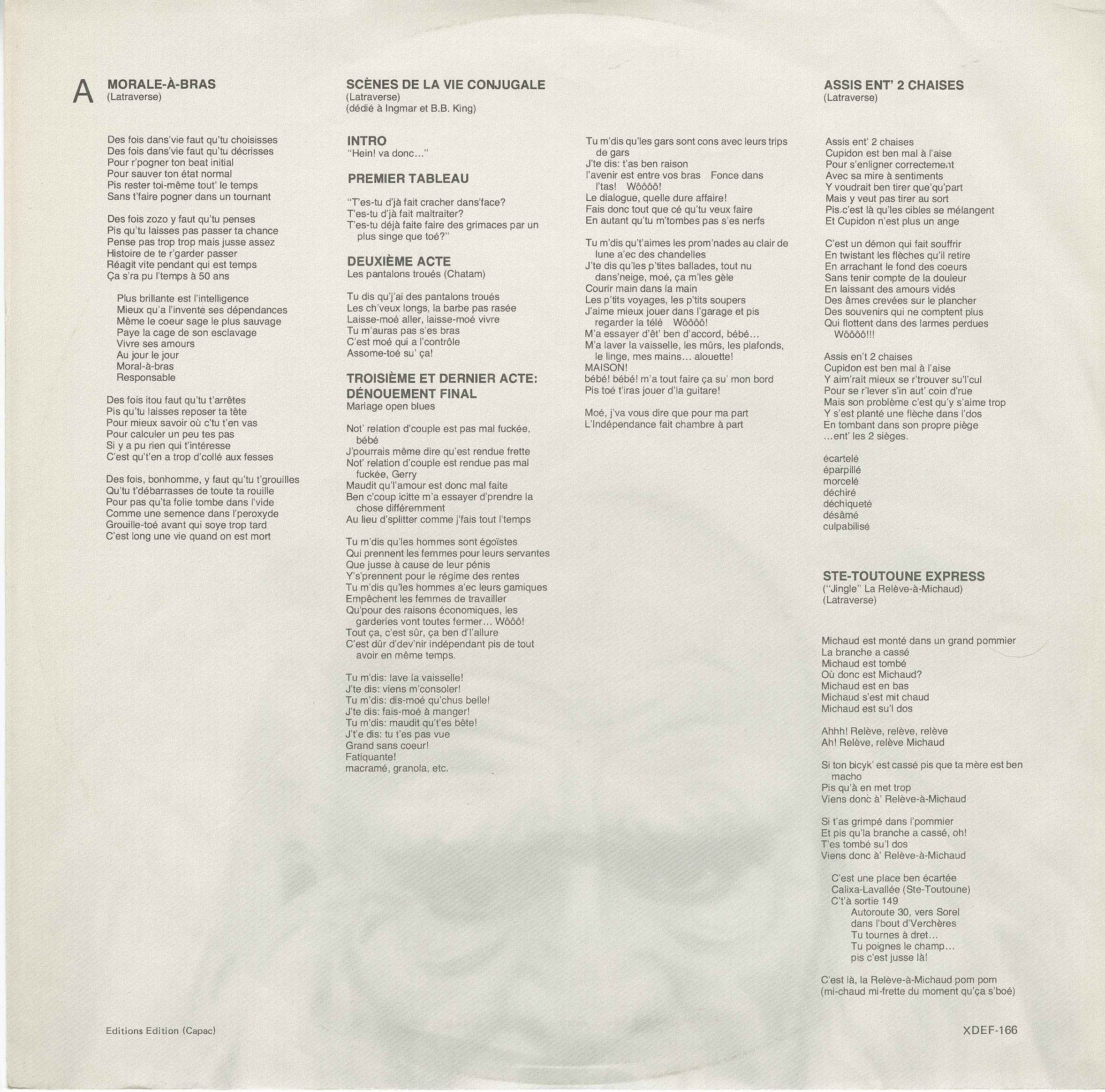 Written by Plume Latraverse except "Cul d’sac rock" written by Gaston Gagnon, Plume Latraverse