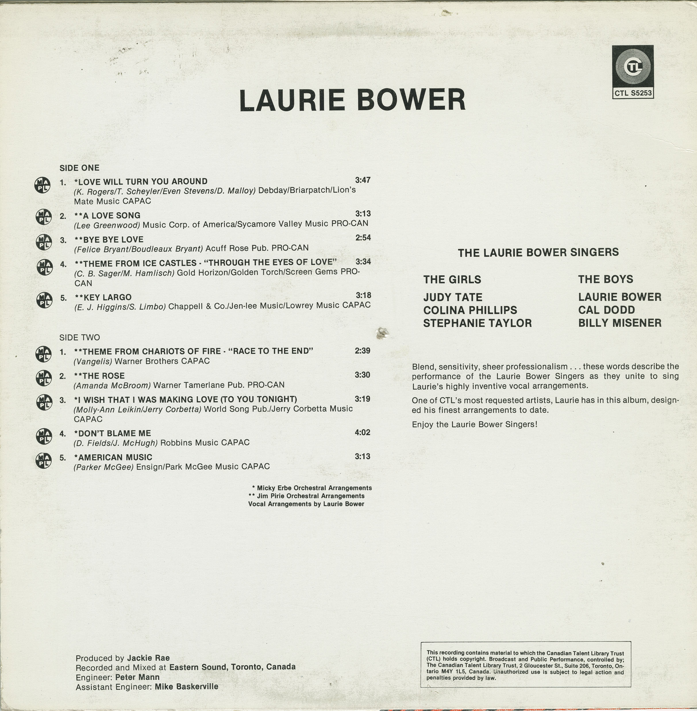 The story of the Laurie Bower Singers is less about chart hits than it is about presence. For more than two decades, their voices seemed to be everywhere in Canadian life—on radio jingles, television themes, variety shows, commercials, and an unbroken run of albums that defined the sound of smooth, professional harmony. Behind it all was trombonist, arranger, and choral leader Laurie Bower, whose knack for marrying jazz sophistication with pop clarity made his singers indispensable to broadcasters and record producers alike.