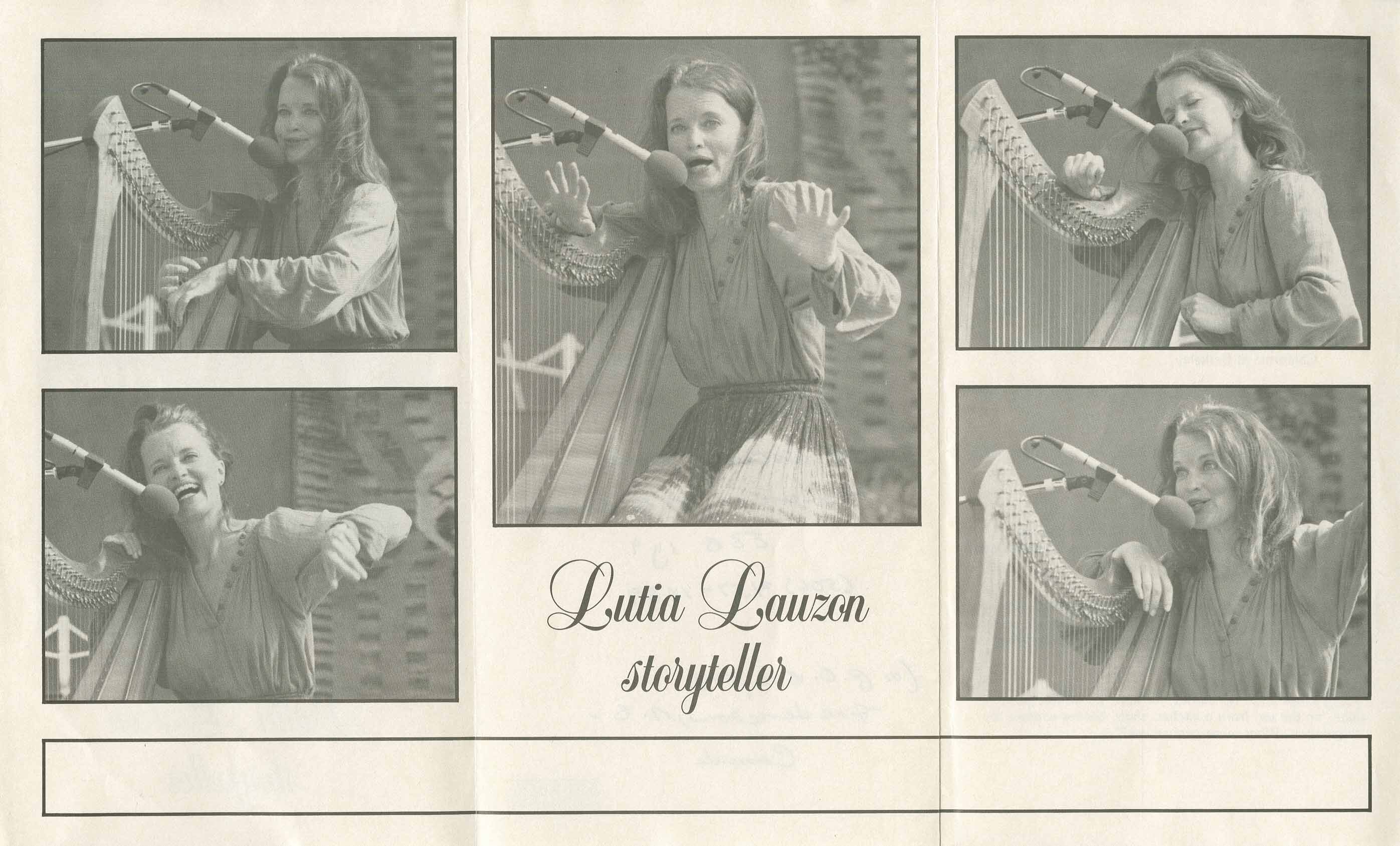 Lutia Lauzon's impressive resume includes ten years of classical musical training with Phillip Lillistol of Minneapolis; one year of dance training with Synergy Studios of Vancouver; six months of mime training with the Canadian Mime Theatre of Niagara-on-the-Lake; one year of voice training with Charles Underwood of Halifax; two years of writing/composing/performing with Theatre New Brunswick; five years of concert stage performance with largalon Productions of New Brunswick; and a degree in Philosophy from the University of California at Berkeley.