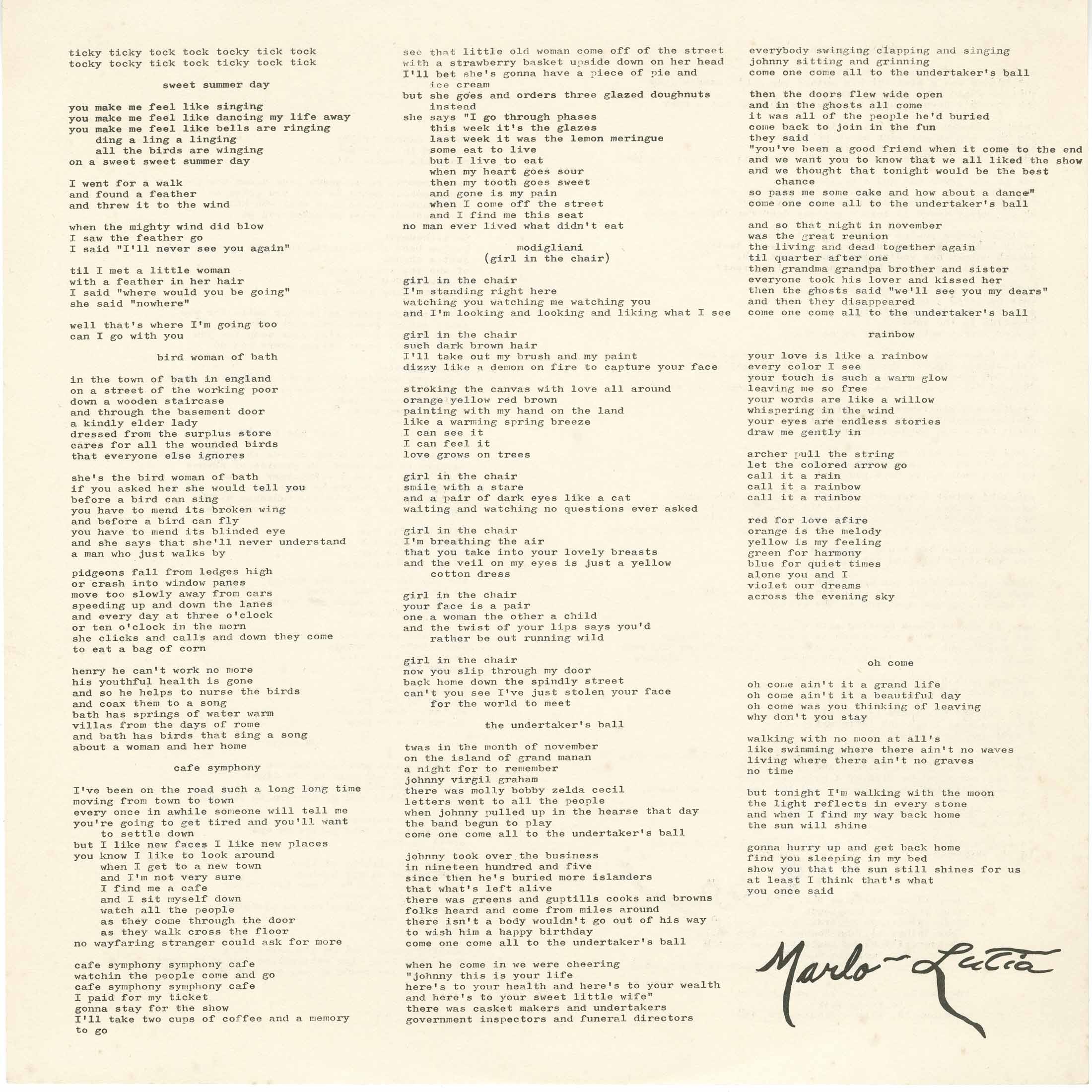 The album was dedicated to Marie Marquart who died on January 19, 1975. The album was recorded later that year on Marlutiamusic with no label number. It came with a single light cardboard insert which has all of the lyrics.