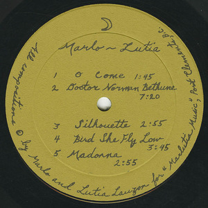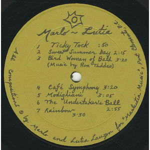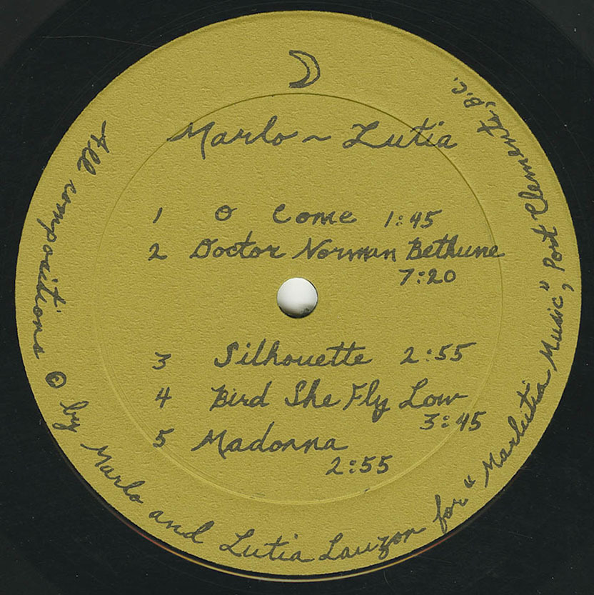 Marlo Lutia Lauzon were the folk duo of Paul Lauzon and Lutia Lauzon who together recorded 2 lp's and a few 45's.