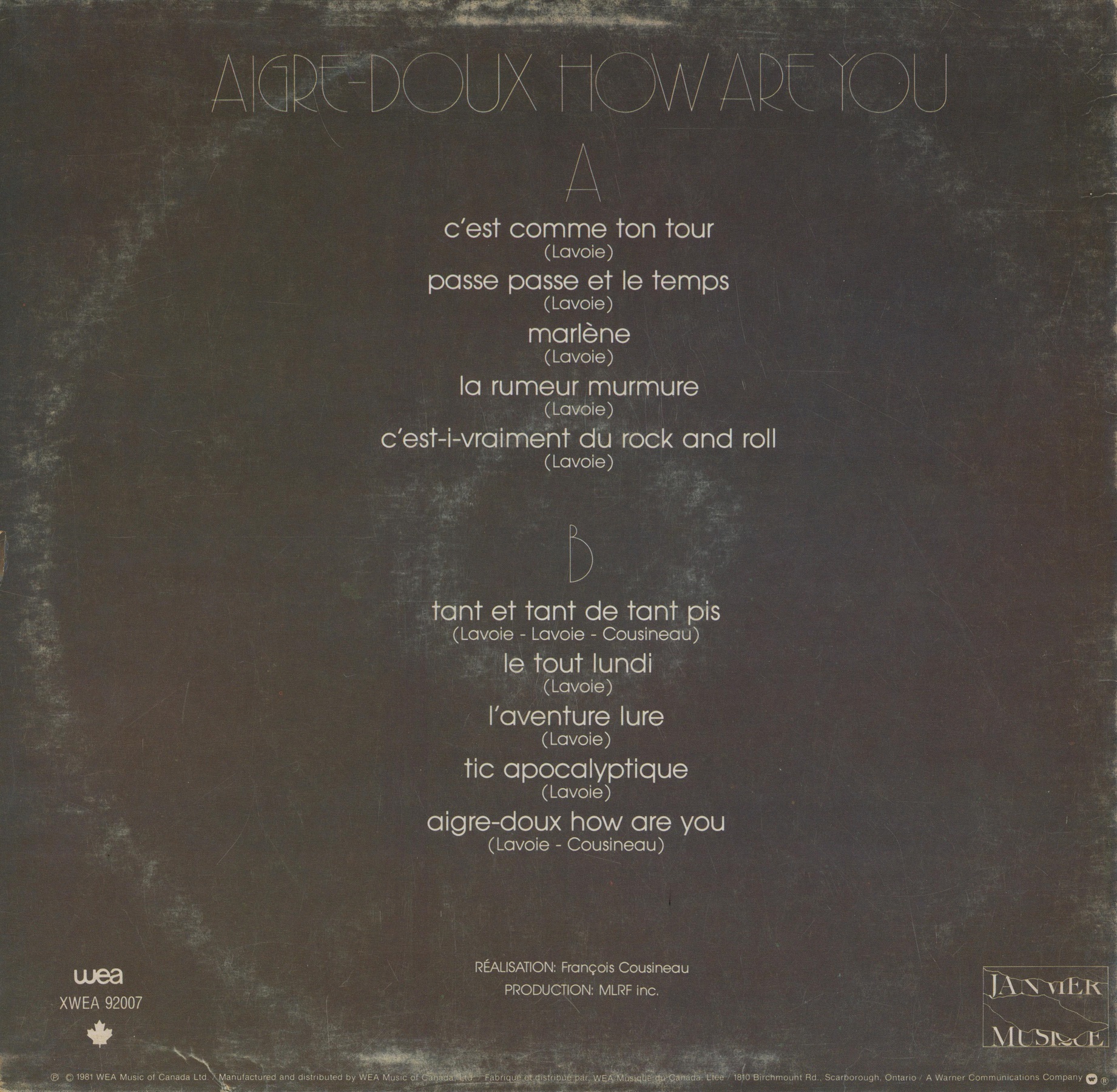 Aigre-doux, How are You Back cover